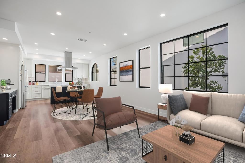Offering the perfect blend of luxury, comfort and convenience, this beautifully designed 2 bedroom plus 2.5 bath townhouse features approx. 1,571 square feet of living space with high-end amenities. Enjoy open-concept living with high ceilings and large windows that flood the space with natural light. The living room with electric fireplace seamlessly flows to the dining room and gourmet kitchen, making it perfect for entertaining. This kitchen is a chef's delight equipped with state-of-the-art appliances like Thermador 4-burner range/oven, dishwasher and refrigerator; sleek Quartz countertops; and ample storage featuring a 2-shelf Lazy Susan and pull-out spice rack, self-closing and pull-out shelves. Retreat to your private sanctuary in one of two generously sized bedrooms, each featuring modern en-suite bathrooms. Step outside to your private patio, where you can relax and unwind. The quaint outdoor space is perfect for morning coffee, evening cocktails or simply enjoying the fresh air. Situated in a vibrant community in the heart of Thousand Oaks, you're just minutes away from shopping, dining, entertainment, top-rated schools and close to the Civic Arts Plaza, Gardens of the World and The Lakes! Easy access to the freeway makes commuting a breeze. This townhouse comes with all the modern conveniences you could wish for including central air-conditioning, upstairs laundry room, tankless water heater and 2-car parking (1 carport with electric car charger + 1 assigned space). Don't miss the opportunity to make this stunning modern townhouse your home!