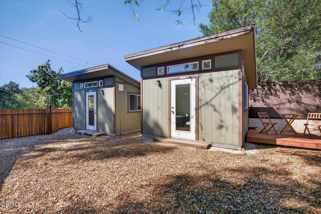 Tucked within the serene landscape of Upper Ojai, 12752 Sisar Road offers a rare private retreat at the quiet end of the road, surrounded by natural beauty and exceptional seclusion. The 2-bedroom, 1-bath home spans approximately 1,601 sq ft and features warm, rustic charm with rich wood interiors, an open, light-filled layout, and a striking stone fireplace as the centerpiece. French doors open to the outdoors, creating a seamless connection to nature, with nearby trails and a year-round stream enhancing the setting. Recent upgrades include a newer roof with fire sprinklers, updated electrical, new HVAC ducting, remodeled kitchen and bath, newer appliances, updated flooring, tankless water heater, and refreshed interior and exterior paint. The landscaped grounds have been thoughtfully improved, and three newly constructed outbuildings--including two finished Tuff Sheds--offer flexible space for office, studio, or storage. Gated entry and upgraded fencing provide added privacy and security. A true Ojai retreat, blending comfort, charm, and a peaceful connection to the outdoors.