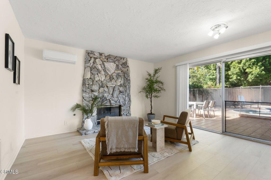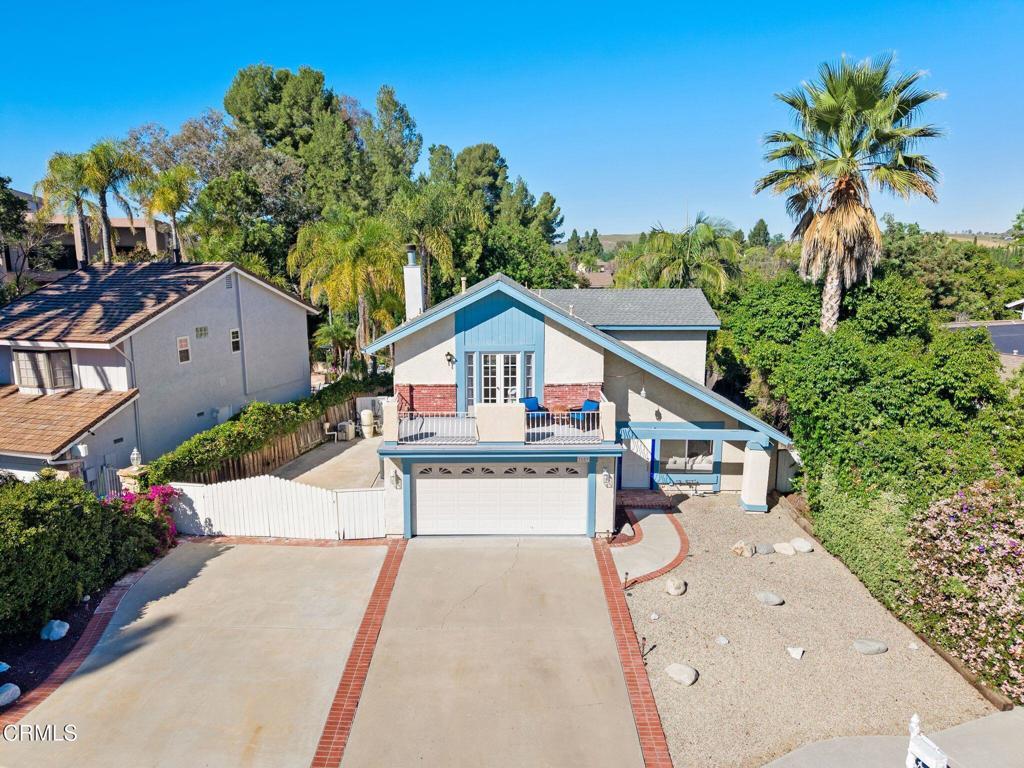 Tucked away on a quiet cul-de-sac in Newbury Park, this 4-bedroom, 2.5-bath home offers a private backyard oasis ideal for relaxing and entertaining. Inside, the home features an open plan layout with high ceilings and two separate living areas, including a spacious living room and a den with a fireplace. The galley style kitchen connects to the den and formal dining area and flows to the backyard, where you'll find a micro pebble tech pool and spa, in addition to a covered outdoor bar area with a sink and refrigerator. The appealing side yard offers ample space with endless possibilities for gardening and outdoor use. Upstairs, the primary suite features a private balcony with mountain views. Additional highlights include low maintenance, drought-tolerant landscaping and RV parking. Located in the Conejo Valley near parks, hiking trails, shopping, freeway access, Amgen, and within a highly regarded school district, this home offers comfort, convenience, and a great indoor-outdoor lifestyle.