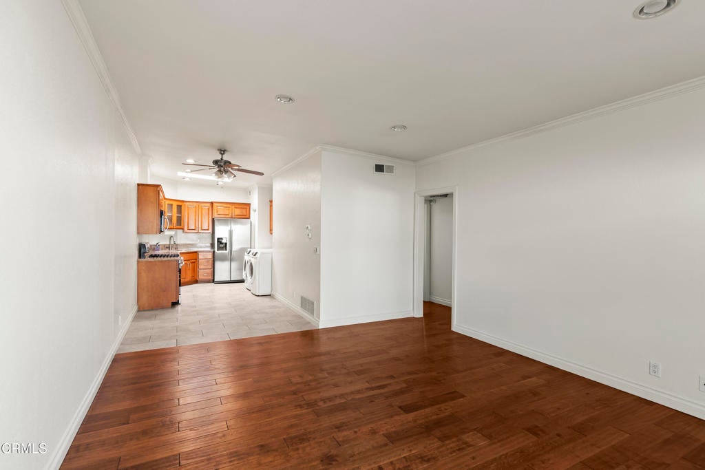 WELCOME HOME to this highly desirable Marina Pacifica condominium with private patio and a plethora of features. Walk into an open and seamlessly spacious living area offering newer beautiful wood-like flooring creating an inviting and space living area for entertaining or just making it your cozy space. Ceiling corner to corner of beautiful crown molding in every room. Kitchen offers beautiful granite counter tops and upgraded cabinets, recessed -lighting, ceiling-light fan, natural light, stainless steel refrigerator, five burner stainless steel stove/oven, beautiful tile flooring along with washer/dryer. The generously sized bedrooms include one with a private half bath, walk-in closet with customized storage shelves. Ceiling light-fan with remotes and new carpet in each bedroom was recently installed. Bathrooms offer granite counter tops and updated lighting. Enjoy indoor-outdoor living with a private front-yard patio with lush landscaping giving a serene and a sense of relaxation. Your two-car garage has direct access from your front door, beautiful epoxy floor and above storage. Community amenities include a pool and spa just a short walk away. Ideally located minutes from Seabridge Shopping Center, Oxnard beaches, and the scenic Channel Islands Harbor.