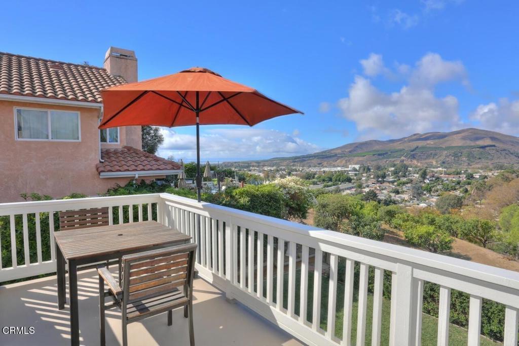 Brock Hills Beauty with Panoramic Views in West VenturaPerched high in the sought-after hills of West Ventura, this beautifully upgraded home offers breathtaking panoramic views of the mountains, ocean, Ventura River Valley, community orchard, and city below. This charming 3-bedroom, 2.5-bath residence spans approximately 1,633 square feet and showcases pride of ownership with over $175,000 in thoughtful remodeling and enhancements.Step inside to discover a light-filled interior featuring hardwood floors throughout both levels, soaring cathedral ceilings in the living room and primary bedroom, and elegant custom details including beam work, wrought iron railings, and designer tile accents. The completely remodeled kitchen is a standout, boasting quartz countertops, new appliances, and modern finishes perfect for everyday living and entertaining.All three bedrooms are conveniently located upstairs, including an inviting primary suite designed for comfort and relaxation with a custom shower and spa-like ambiance. A secondary bedroom features a private balcony and sliding doors framing beautiful ocean views--an ideal setting for a home office or creative space.The private backyard offers a peaceful retreat with scenic vistas, a covered patio with stamped concrete, raised-bed vegetable garden, and included BBQ--perfect for outdoor dining and gatherings. Additional highlights include dual-pane windows, air conditioning, an expanded dining area, and a newly epoxy-coated garage floor.Located in the desirable Brock Hills community, residents enjoy a low HOA fee of $165/month and access to a charming community orchard just below the property. Conveniently situated near top-rated schools, scenic bike paths to the beach or Ojai, and easy access to Highway 33 and the 101 Freeway, this home offers the perfect blend of tranquility, convenience, and coastal living.Don't miss this rare opportunity to own a view home in one of West Ventura's most desirable neighborhoods.