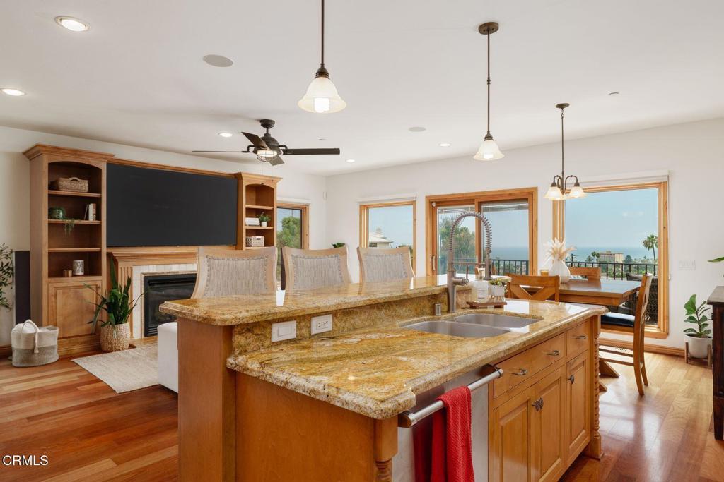 Just above downtown Ventura and the beach, this custom-built coastal home showcases panoramic ocean, island, and city-light views. With a coveted vacation rental permit, it's been enjoyed as both a second home and a successful short-term rental--offering flexibility, income potential, and the perfect turnkey getaway.The open-concept great room blends dining, kitchen, and living spaces, all opening to a view deck made for morning coffee or sunset cocktails. Quality craftsmanship is evident throughout--from the travertine-accented fireplace to Brazilian cherry hardwood floors, Pella windows and doors, custom alder cabinetry, and Viking appliances. A grand entry reveals soaring ceilings, a wrought-iron staircase, and natural light at every turn.On a generous 11,712 sq. ft. lot, this low-maintenance property is in impeccable condition and offers exciting potential to expand outdoor living space or develop the lower hillside level--maximizing the already breathtaking views.