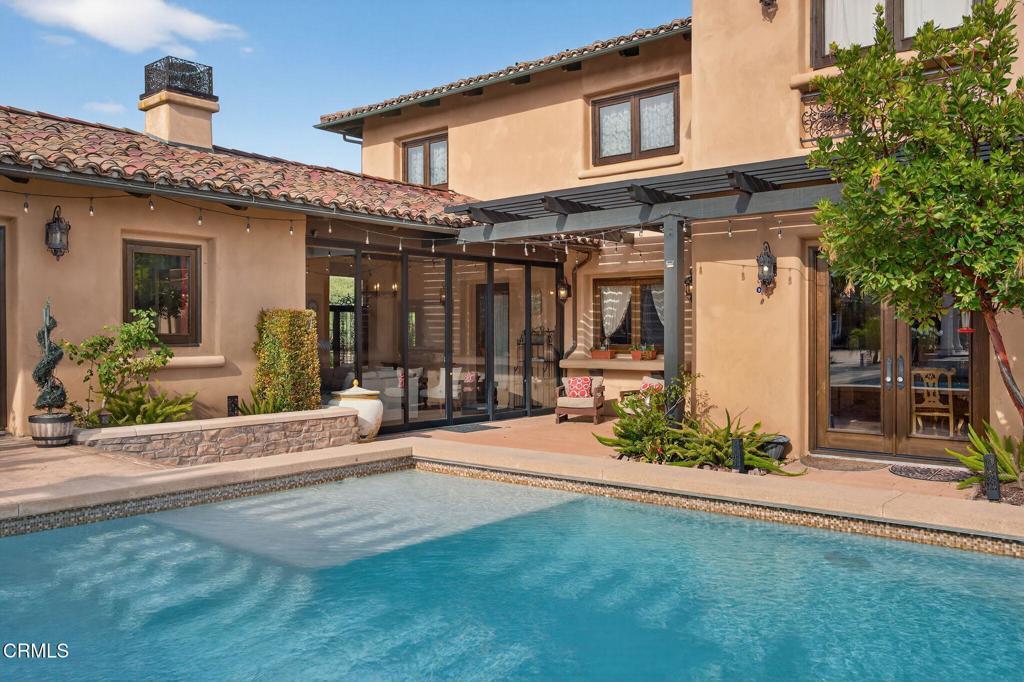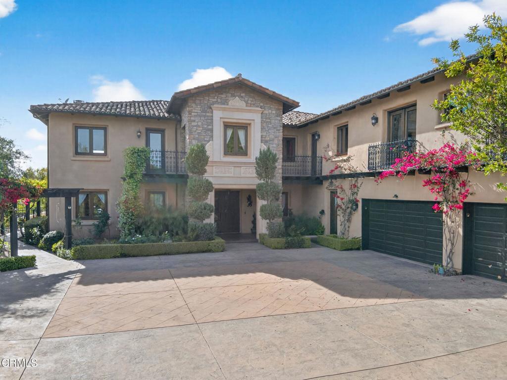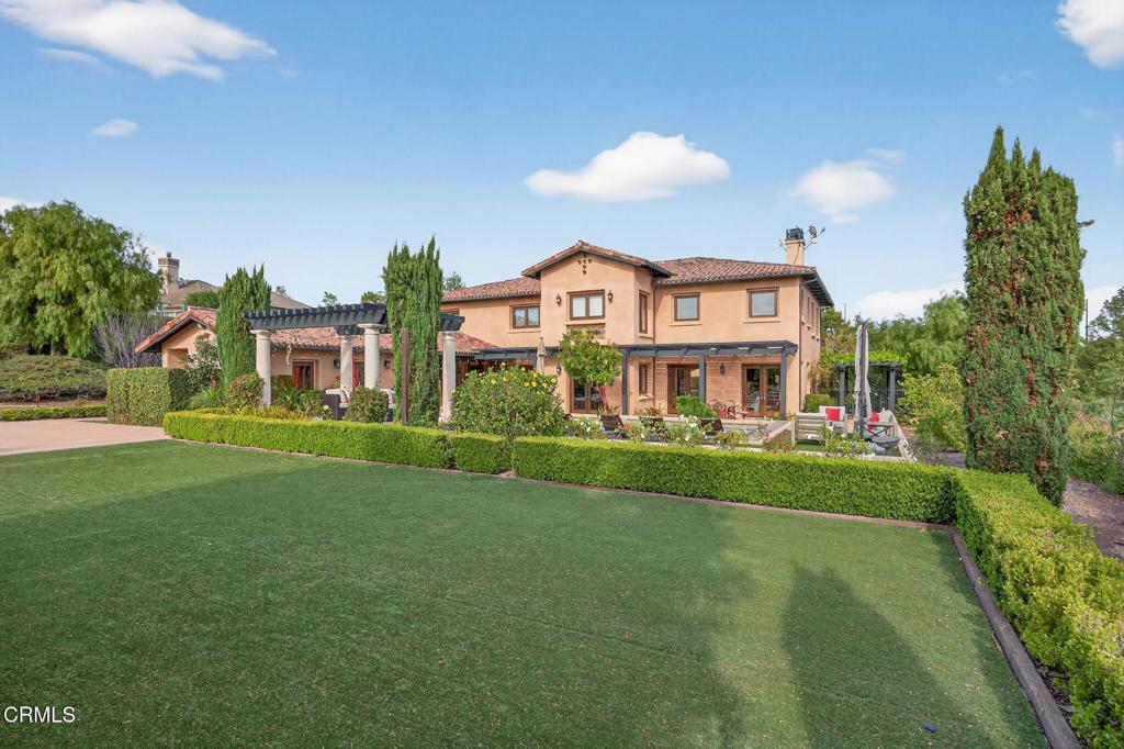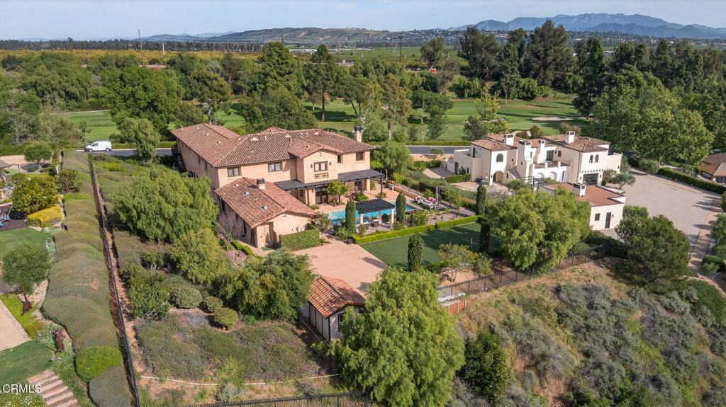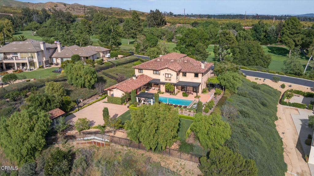 Tucked behind the gates of the prestigious Saticoy Highlands, this extraordinary custom Old World Italian estate offers a rare opportunity to own one of the most remarkable homes in the community. Overlooking the 18th fairway of the highly regarded Saticoy Club, the setting alone is nothing short of exceptional--combining privacy, elegance, and sweeping golf course views. Built as the personal dream home of award-winning Hillrise Development, every detail has been thoughtfully designed and expertly crafted. Spanning approximately 7,417 square feet, the residence features seven bedrooms and seven bathrooms, along with grand living spaces that feel both impressive and inviting. A dramatic foyer with a double staircase sets the tone, leading into a beautifully designed great room with a wet bar and dining area, ideal for both entertaining and everyday living. The chef's kitchen is as functional as it is stunning, complete with dual dishwashers, a Wolf range, Sub-Zero refrigerator, and generous prep and gathering space. Downstairs, you'll find a private guest suite and a separate office, while upstairs offers a spacious loft and media room, along with two luxurious primary suites designed for comfort and retreat. Additional highlights include a private wine cave, a light-filled sunroom-style den that opens seamlessly to the outdoor living spaces, and a detached guest house with its own full kitchen, bedroom, and bathroom--perfect for extended stays or multi-generational living. Step outside and you'll discover a true resort-style backyard, featuring a pool and spa, basketball court, outdoor shower and expansive patios designed for dining and entertaining. The grounds are truly exceptional creating the perfect setting to enjoy Southern California evenings year-round. With four garage spaces, timeless architectural character, and an unbeatable location within one of the most sought-after gated communities, this is a home that truly stands apart. An incredible opportunity to live at The Saticoy Club - the #1 prestigious golf course in Ventura County - and ideally situated between Camarillo and Ventura, within easy access to freeways for Santa Barbara and LA commutes. Also located in the excellent Mesa Union School district. Don't let this one pass you by!