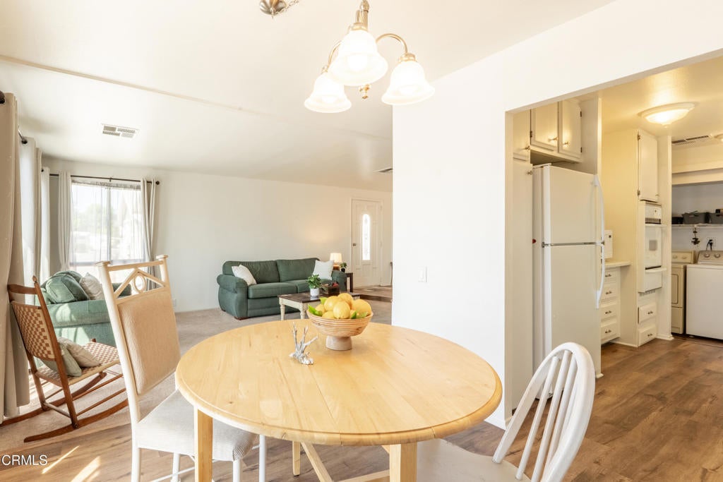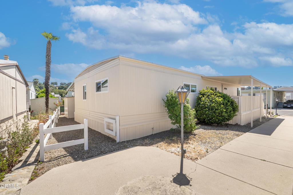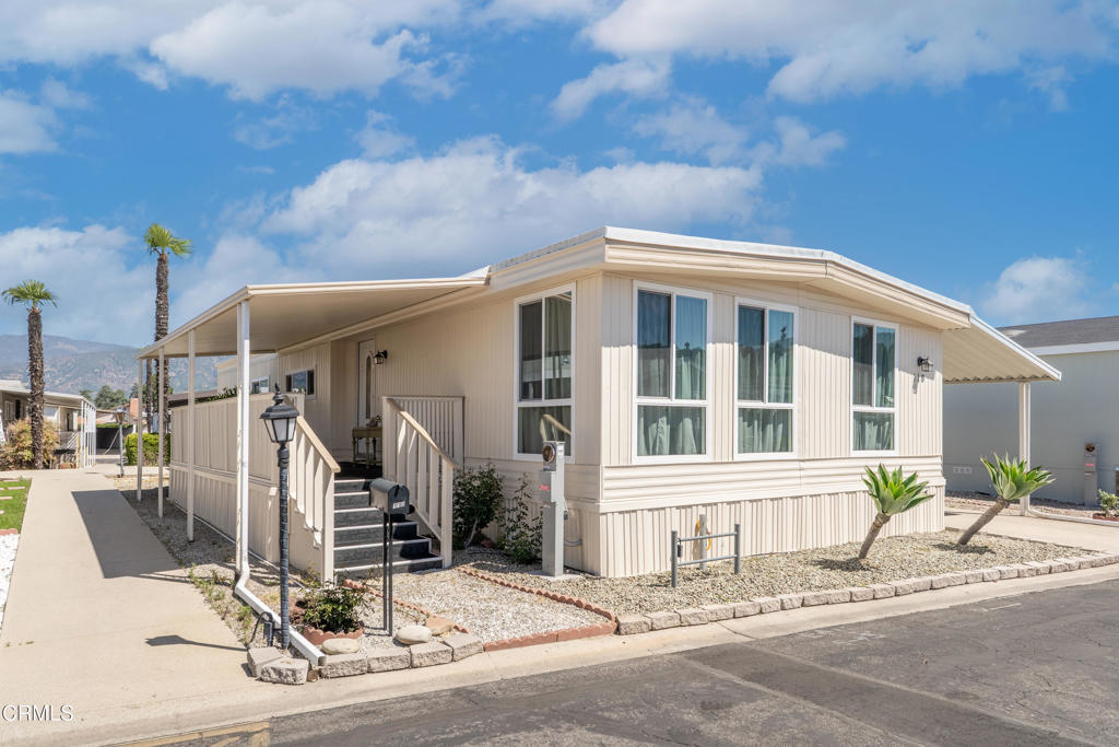 Welcome home to the gated Ojai Villa Estates 55+ community. If you're looking for a beautiful well maintained, move-in ready home, look no further! This 3 bed, 2 bath home offers 1,344 square feet of comfortable living space bathed in natural light creating a bright, warm inviting atmosphere. Inside you'll find a balance of carpet and wood-like vinyl flooring that adds both comfort and durability. Enjoy year-round comfort with an updated air conditioning system, newer insulated windows and freshly painted exterior, enhancing both efficiency and curb appeal. The home features a spacious covered porch, ideal for tranquil evenings and mornings to take in the mountain views. Additional features include covered parking, a detached shed, and new fencing for added privacy and defined outdoor space. Enjoy the community pool, spa, clubhouse, gated access to RV storage, nearby bike trails, and more. Ojai's living at its best!