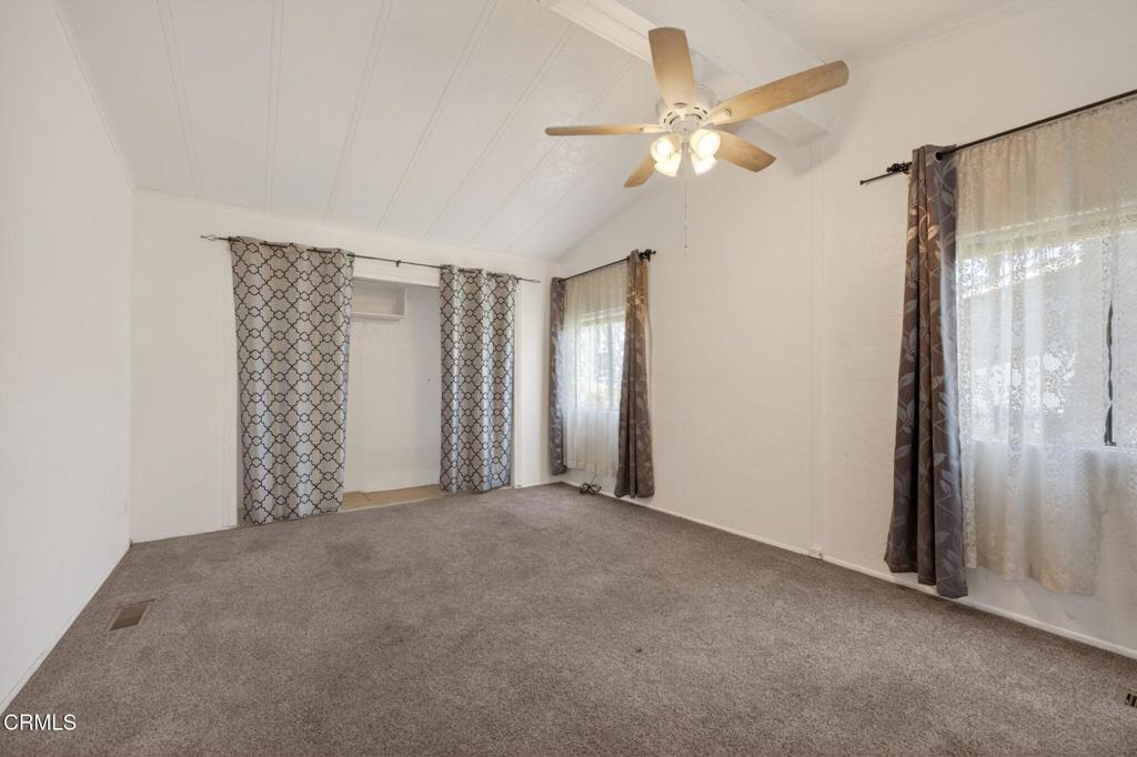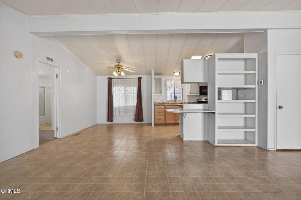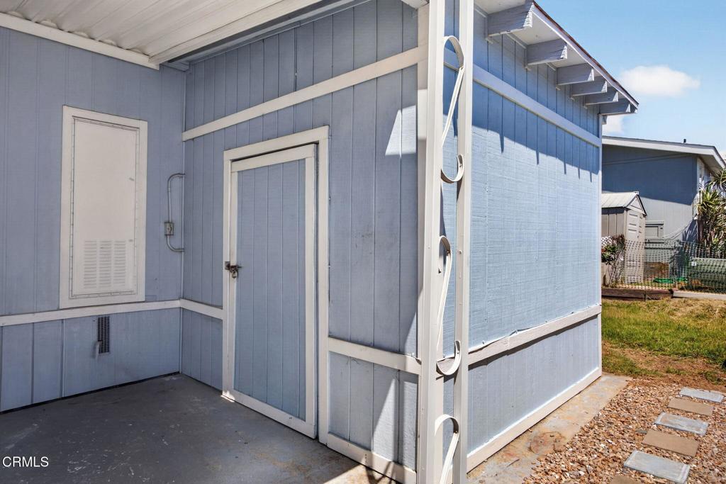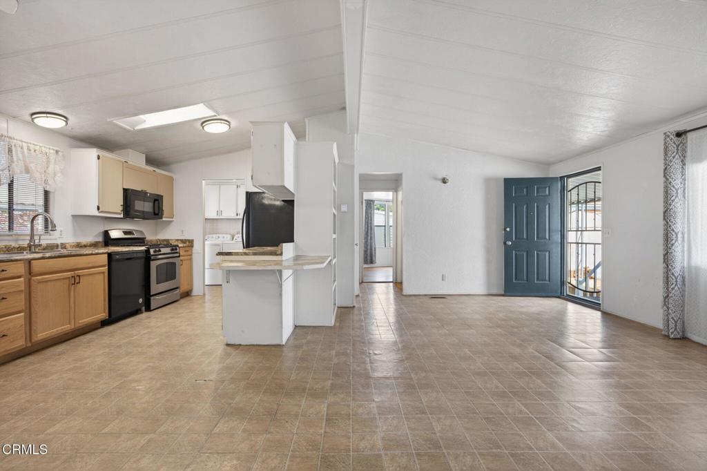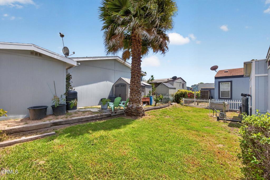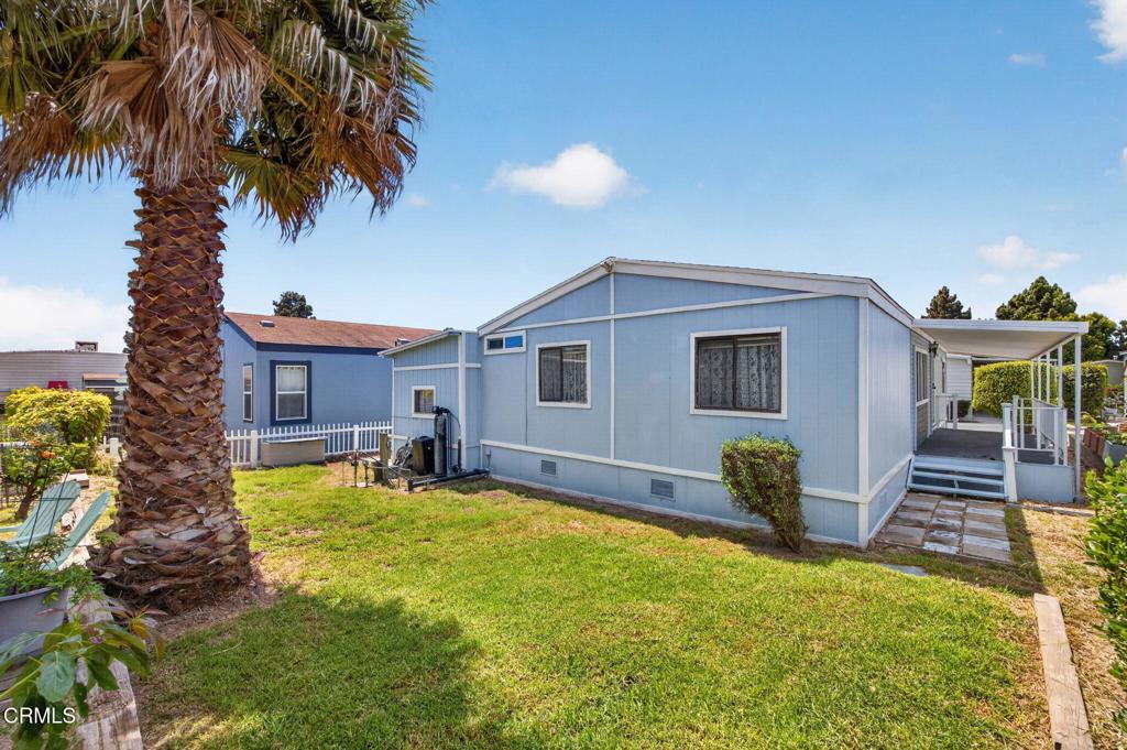 WOW! A fabulous opportunity to own at a great price in a Family park, centrally located in Ventura! This 3 bedroom, 2 bath home is ready and waiting for your personal touches. You will love the open floor plan with a spacious living, kitchen and dining area with vaulted ceilings, lots of windows and a skylight. Two bedrooms and a bathroom are in the front of the house while the primary en-suite is in the back of the house off of the living room. Newer appliances are included and a washer and dryer too! Situated on a nice sized lot which is located close to the clubhouse and amenities. Enjoy coffee on the large, covered front porch and barbecues in the spacious, grassy back yard. The carport is ample for tandem parking. An oversized shed has built-in shelving, a work table, electricity and offers plenty of storage space. Seller is including a lawn mower and tools too! Imperial mobile home park is not age restricted and the amenities include: Pool, spa, clubhouse, kitchen, billiard and game rooms, basket ball court, playground and more. This prime location is close to schools, shopping, dining, freeways, beaches, parks and everything Ventura has to offer! Welcome home!