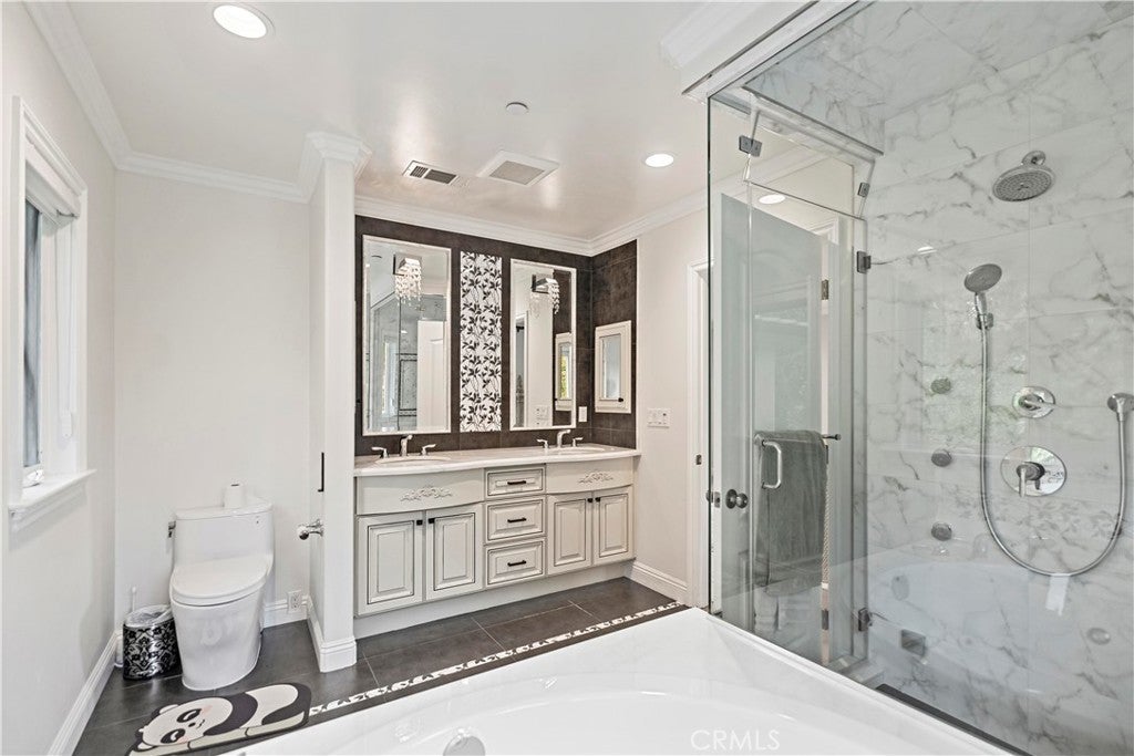 This stunning modern estate was completely reimagined and finished in 2015, set on a 21,000+ sf land in the city’s most desirable neighborhood. The spacious living room boasts a soaring ceiling and a striking circular bay window, while the gourmet kitchen includes a separate enclosed wok room. Family room with expansive French doors leading to a relaxing outdoor patio. Two spacious bedrooms on the first floor and three luxurious suites upstairs. The beautifully landscaped backyard features a private basketball court and golf practice area, while the side yard is an entertainer’s dream with a fountain pool, BBQ station, and patio. Eco-conscious upgrades include newly installed solar panels (2021). Property is well maintained in a great condition. Do not miss this opportunity to make it your dream home!