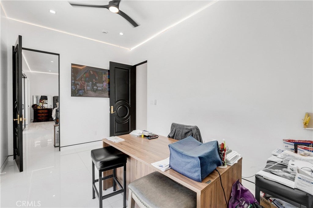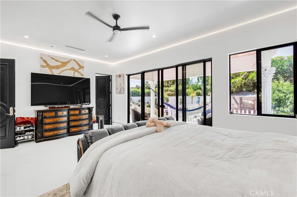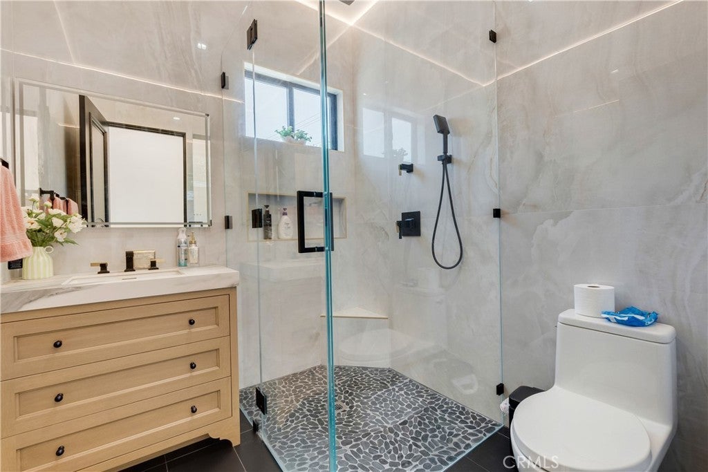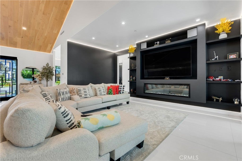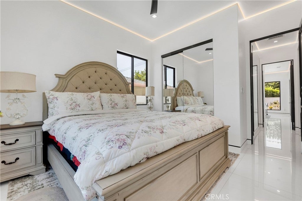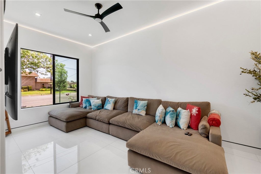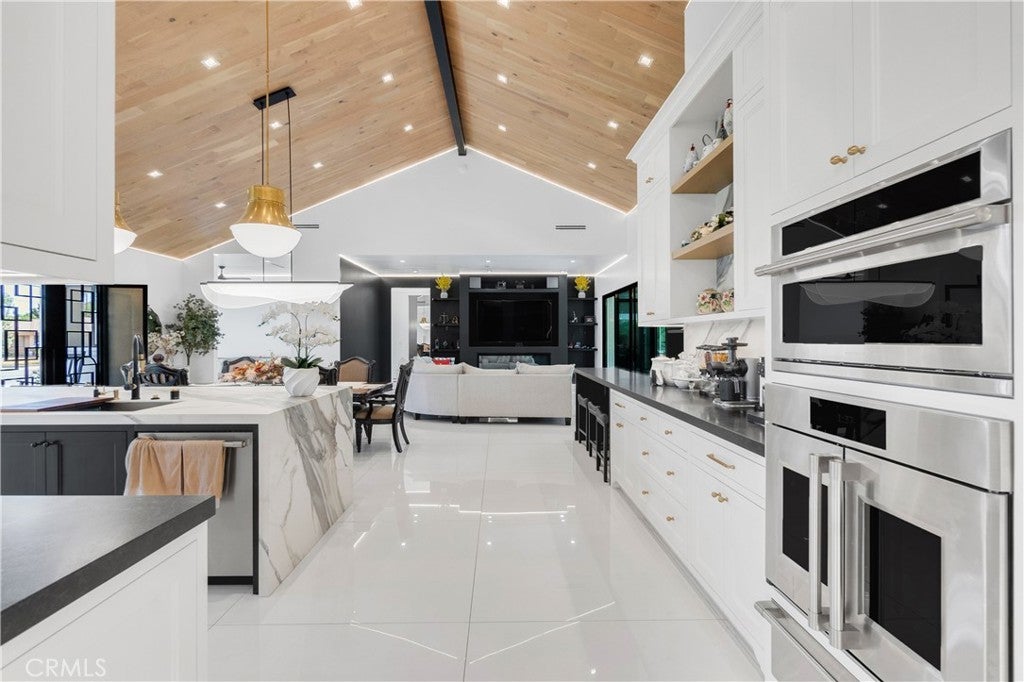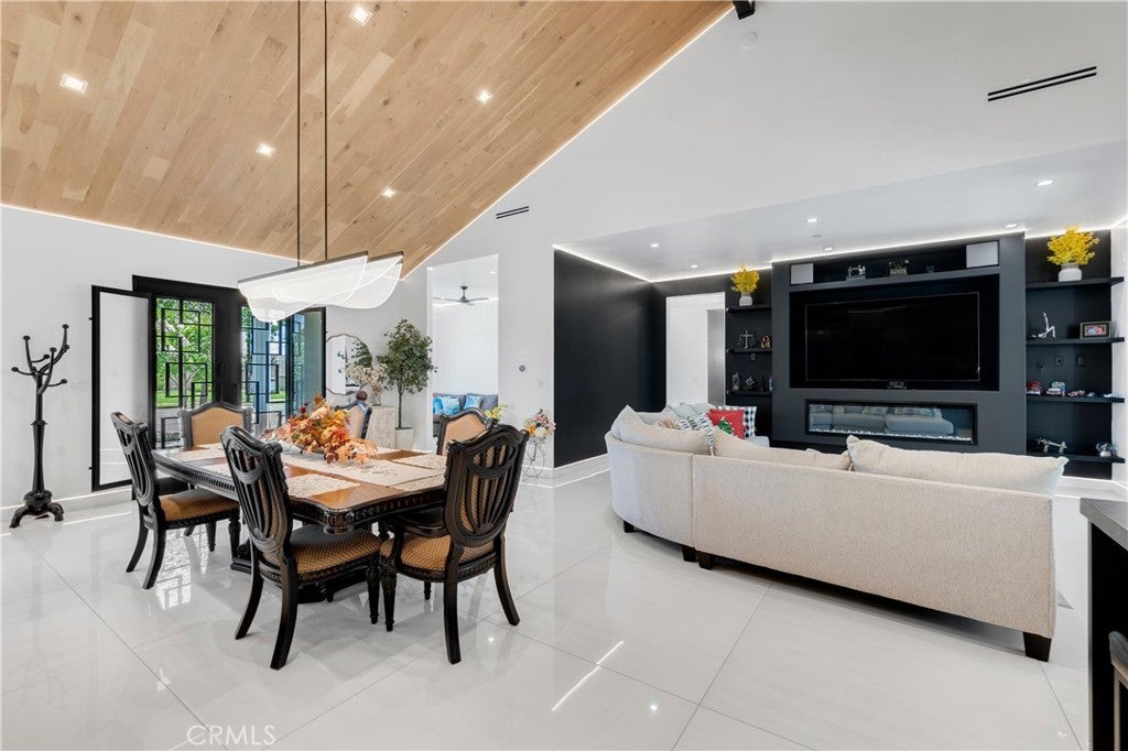 Welcome to this one-of-a-kind, newly built luxury estate nestled in one of Downey's most desirable neighborhoods. Boasting 2,159 square feet of brand-new construction on an oversized 9,529 square foot lot, this exceptional 5-bedroom, 3-bathroom residence offers the perfect blend of timeless elegance and modern design. Every inch of this home was thoughtfully reimagined and constructed from the ground up with no expense spared. Step through grand custom double doors into a light-filled open floor plan featuring dramatic vaulted wood ceilings, oversized porcelain tile flooring, and exquisite LED mood lighting throughout. The designer kitchen is a true showpiece, highlighted by a massive waterfall island wrapped in rich marble, a built-in gas cooktop, custom white cabinetry, double ovens, and a separate coffee bar. Enjoy the convenience of a full bar area with built-in shelving and wine display, ideal for entertaining in style. The elegant dining area flows seamlessly into the spacious living room, complete with a custom black media wall, integrated fireplace, and built-in shelving. Expansive windows and glass doors create the perfect indoor-outdoor experience, leading to the covered patio with custom ceiling design and views of the oversized backyard ready for your dream pool or garden oasis. The home offers five generously sized bedrooms and three spa-like bathrooms featuring floor-to-ceiling marble finishes, walk-in showers with custom stone tile flooring, and luxury vanities. Additional highlights include: • Gated private driveway • Custom iron double entry doors • Designer lighting and fixtures • Oversized laundry/mud room • Two-car garage with modern glass doors • Fully landscaped front yard and spacious backyard with endless potential This rare gem offers luxury, space, and architectural beauty in one of the most sought-after communities in Downey. A must-see property for the most discerning buyer.