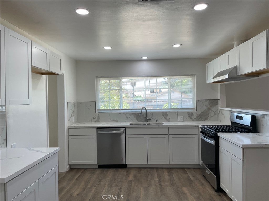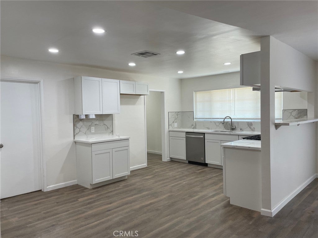 Welcome to this classic newly remodeled Ranch style home located in central Bakersfield. It features tile Roof. Open floor design. 2115 sq ft, 5 Bedrooms, 2.5 Baths, Den, formal dining, split wing. On 14,374 sq ft lot. Spacious great room with beautiful brick fireplace & new French door. Stylish laminate flooring throughout. Gourmet kitchen with quartz countertop, stainless steel appliances & SS sink, garbage disposal, brand new cabinets. Renovated bathrooms, new paint in & out, updated light fixtures, newer HVAC system, new window blinds, new dual pane windows. New ceiling fans in every bedroom. Double vanities in hall bath. The primary bedroom has two closets. Extra-large 2-car garage w/new door & automatic opener. Huge backyard with alley access. Large covered patio w/gas stub perfect for outdoor BBQ & entertainment. Indoor laundry. Block walls at both side yards. Convenient close to shopping, dining, school, park and freeway access.