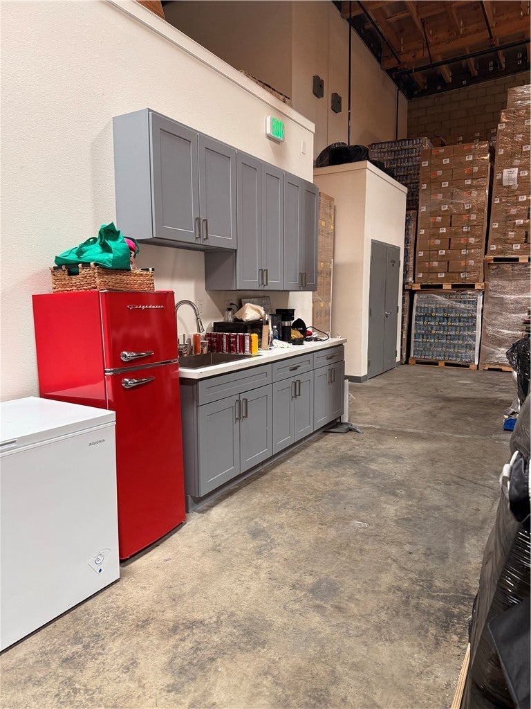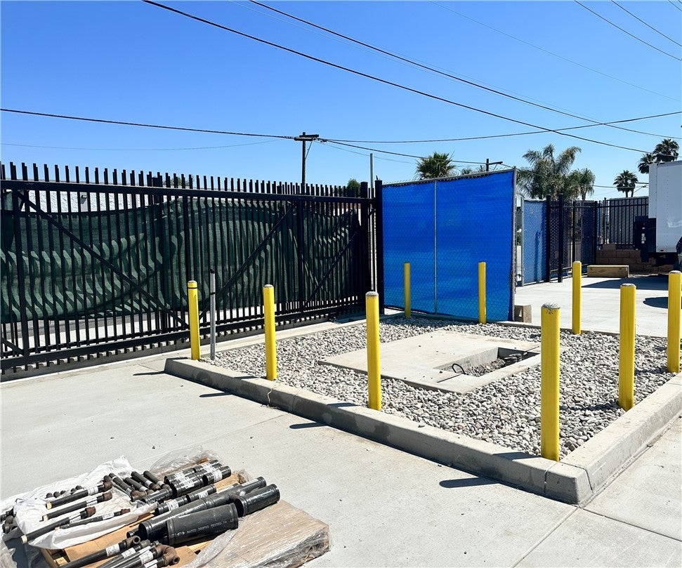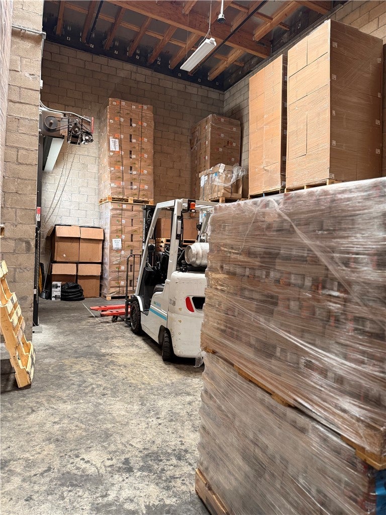 This well-maintained warehouse and office space is located on a desirable corner lot in the City of Industry, conveniently positioned across from Nelson Elementary School. The property features concrete sidewalks and a driveway, with a loading dock and roll-up door for easy access. The office portion offers a functional layout, including two private offices, a reception area, a conference room, two restrooms, and a mechanics room. The office ceiling height is approximately 9 feet, while the warehouse boasts a clear height of 24 feet and includes skylights that provide abundant natural light. Additional features include 15 standard parking spaces and one ADA-compliant parking space. The square lot is attractively landscaped with automatic sprinklers and is fully enclosed by an 8-foot wrought iron fence and gate. Exterior security lighting is also in place for added peace of mind. This property combines functionality, accessibility, and a professional appearance—ideal for a wide range of business operations.