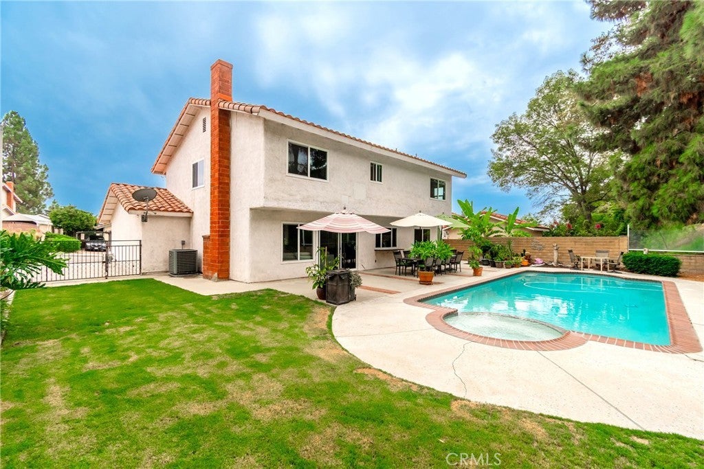 Back on Buyers’ Radar — Pool, RV Parking & ADU Potential! Welcome to 19873 Calle Granada, Walnut — a spacious 4-bedroom, 3-bathroom home offering approximately 2,015 sq ft of comfortable living space, ideally set on a 9,200+ sq ft lot in a highly desirable neighborhood. This thoughtfully designed two-story residence sits at the end of a quiet cul-de-sac, providing privacy and a peaceful setting. The bright living room boasts high ceilings, large windows with elegant shutters, and an inviting dining area. The functional kitchen, appointed with cherry wood cabinets, overlooks the expansive backyard, while the cozy family room is perfect for gatherings with seamless access to the outdoor space. Upstairs, the roomy primary suite features soaring ceilings, two ample closets, a private full bathroom, and beautiful views, creating the perfect retreat. Additional highlights include double pane windows throughout, updated central heating and air, an attached 2-car garage, a long driveway with RV parking on the side, and a newer roof. The generously sized backyard showcases mature landscaping and a sparkling pool that has been recently re-serviced, offering the perfect setting for entertaining or relaxing. With its spacious lot, the property also provides J/ADU potential, ideal for multi-generational living or additional rental income. Plus, its south-facing orientation helps keep the interior naturally cool and comfortable throughout the year. Conveniently located near top-rated Walnut schools, parks, shopping, and freeway access, this home blends everyday functionality with long-term potential. Don’t miss the opportunity to own this beautiful cul-de-sac home with J/ADU potential in one of Walnut’s most sought-after neighborhoods!