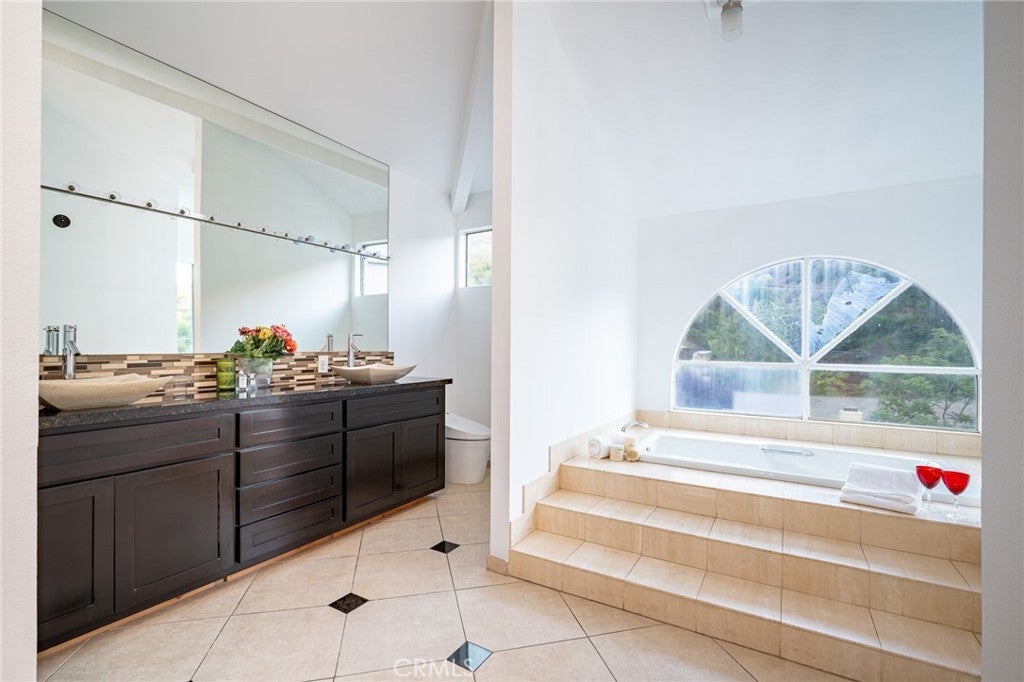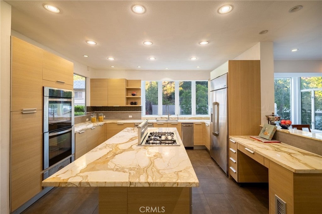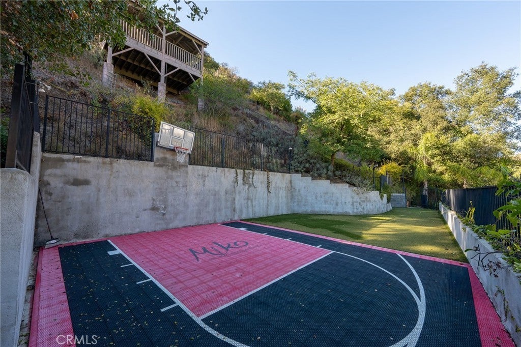 Nestled on an expanded hillside lot in the heart of Bel Air, this contemporary home offers amazing canyon views, timeless style and nearly 4,000 sqft of living space. The lovely curb appeal includes stone paver walkways, hardscaping, English ivy and beautiful garden beds. Step through the double front door to find rich hardwood floors, high ceilings and large windows that fill the home with natural light. The gorgeous kitchen features quartzite countertops, sleek European cabinetry and pro-style appliances. The kitchen leads out to the wrap-around stone patio, complete with an outdoor kitchen, a fireplace, a pergola and plenty of space to dine & entertain. The property continues up the hillside, with terraced sections that include a basketball court, a covered pavilion and a stairway that leads to spectacular views at the top. Back inside, the primary bedroom includes a beautiful custom walk-in closet, and the spa-like ensuite boasts double sinks, a frameless glass shower and a soaking tub with a view. One of the guest rooms also has a private ensuite, while another includes built-in bunks with room for four beds. The remaining bathrooms are updated and stylish. Still need more space? Head down to the lower level, which offers a massive rec room/home gym with LVP floors. Don’t forget about the 3-bay garage (one has been turned into a bonus speakeasy) as well as the home’s numerous balconies & fireplaces. This hillside retreat in Bel Air is located just a short drive from Westwood, Brentwood, Sunset and the 405. The property is zoned to excellent schools, with the coveted Roscomare Rd Elementary only about a mile away. This home offers the ultimate California lifestyle -- as there are hiking trails, golf courses, the Pacific Ocean and world-class shopping & dining options only minutes from your front door. Come take a tour of this one-of-a-kind property before someone else does!