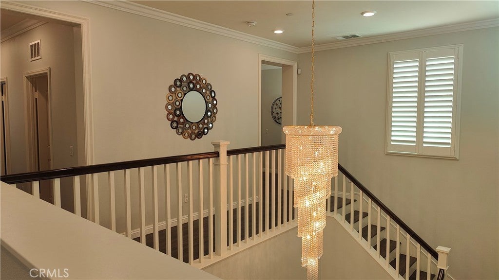 Extremely well maintained and highly upgraded 5 bed 3.5 Bathroom homes in a fairly new and well maintained community walking distance to a small community park and a larger community park. As you enter the house with high ceiling is a den or office and a formal and then there is an open kitchen with upgraded black splash and is practically brand new because owner don't cook or use the appliances at all because they use the small kitchen that they made from the tandem 3rd garage. Formal dinning room is open to the kitchen and access to backyard. Large square family room with beautiful lights. Downstairs have a bedroom with its own full bathroom. Downstairs flooring is primarily upgraded italian tile that resembles wood. There is 3 car attached garage with tankless water heater and water softener. Upstairs is a large master bedroom with a large master bathroom and walk in closet. Upstairs also have a den/living room/office and 3 bedrooms sharing a full bathroom and good size laundry room. All bedrooms have high quality laminate wood flooring. Backyard is good size with california room and trellis for planting. 2 central AC/Heating unit to control upstairs and downstairs separately with Nest thermostat. Home has leased solar to help out with electricity cost. House is facing North and South so its is extremely good in weather, where summer time the house is naturally cooler and winter time is naturally warmer. House is not near electricity tower and in a quiet street location. Beautiful crystal hanging on the high ceiling on the stairs is included with sale. House has led and upgraded lightings throughout and ready for move in!