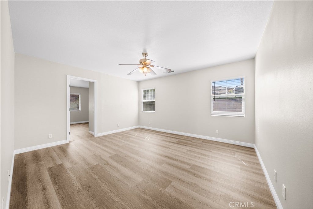 Welcome to this spacious and beautifully maintained 5-bedroom, 3-bathroom home offering 2,877 sq. ft. of comfortable living space in a quiet and desirable Menifee neighborhood. Freshly painted throughout with new flooring in all bedrooms, this move-in-ready home provides a warm and inviting atmosphere from the moment you step in. The open floor plan features a large living and dining area that flows effortlessly into the family room and kitchen — perfect for both everyday living and entertaining guests. The kitchen offers plenty of counter and cabinet space, ideal for family meals and gatherings. Downstairs includes a full bedroom and bath, providing great flexibility for guests or multi-generational living. Upstairs, the spacious master suite features a large walk-in closet and a bright ensuite bathroom. Big backyard, perfect for gardening, outdoor dining, or creating your dream outdoor retreat. The home also includes an attached two-car garage and a newer water heater for added convenience. Located in a peaceful, well-kept community close to shopping centers, supermarkets, parks, and easy freeway access, this property combines comfort, location, and value — a wonderful place to call home! Don’t miss the opportunity to own this beautifully updated and move-in-ready home in Menifee!