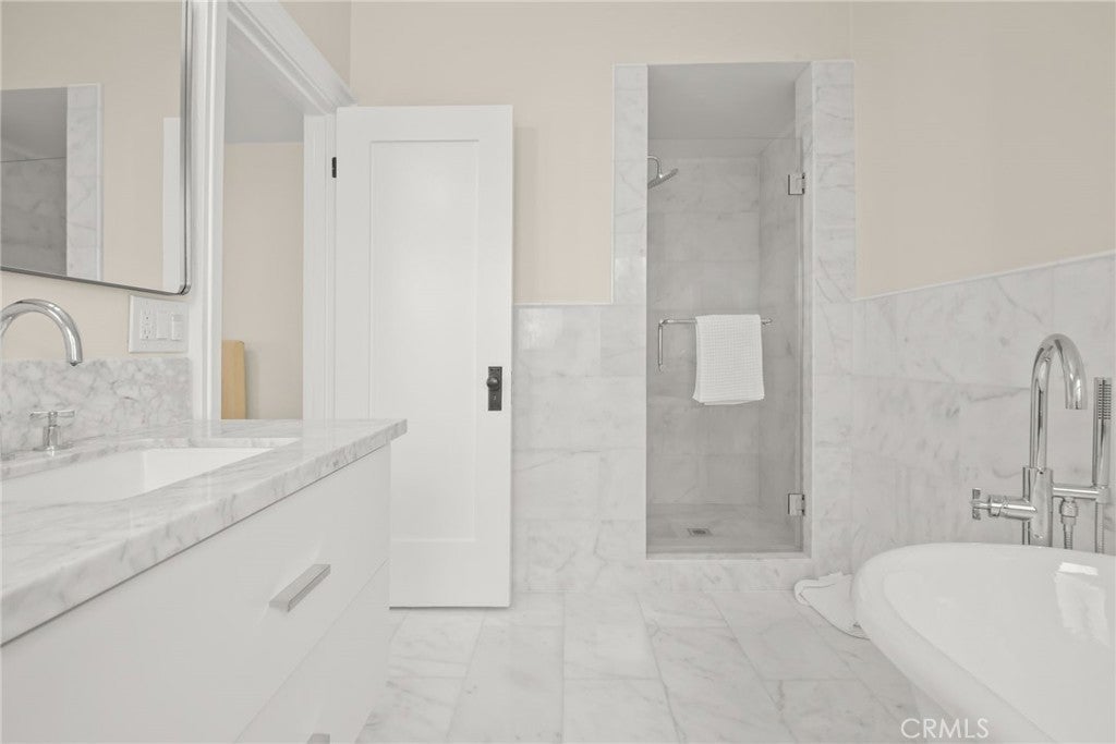 Remodeled 2025 Mediterranean Revival–style condo located in a private, gated community of only four units in Los Angeles Wilshire Center Area ~ Set above the street on an up-slope lot, this home offers a secluded and secure setting with an automatic swing gate for entry ~ Thoughtfully updated with modern materials while preserving original architectural charm ~ Features include 9-foot ceilings throughout, brand-new electrical and plumbing systems, and custom cabinetry with high-end appliances ~ The formal dining room opens through French doors to a private balcony, providing great indoor/outdoor flow ~ This spacious unit offers 3 bedrooms, 3 bathrooms, along with a separate laundry/utility room with deep sink ~ Additional upgrades include new central A/C and heating, dual access from front and rear parking areas, and 2 assigned parking spaces ~ Prime Koreatown location close to Hancock Park, Hollywood/Melrose and Downtown LA. A perfect blend of classic Mediterranean character and modern convenience.