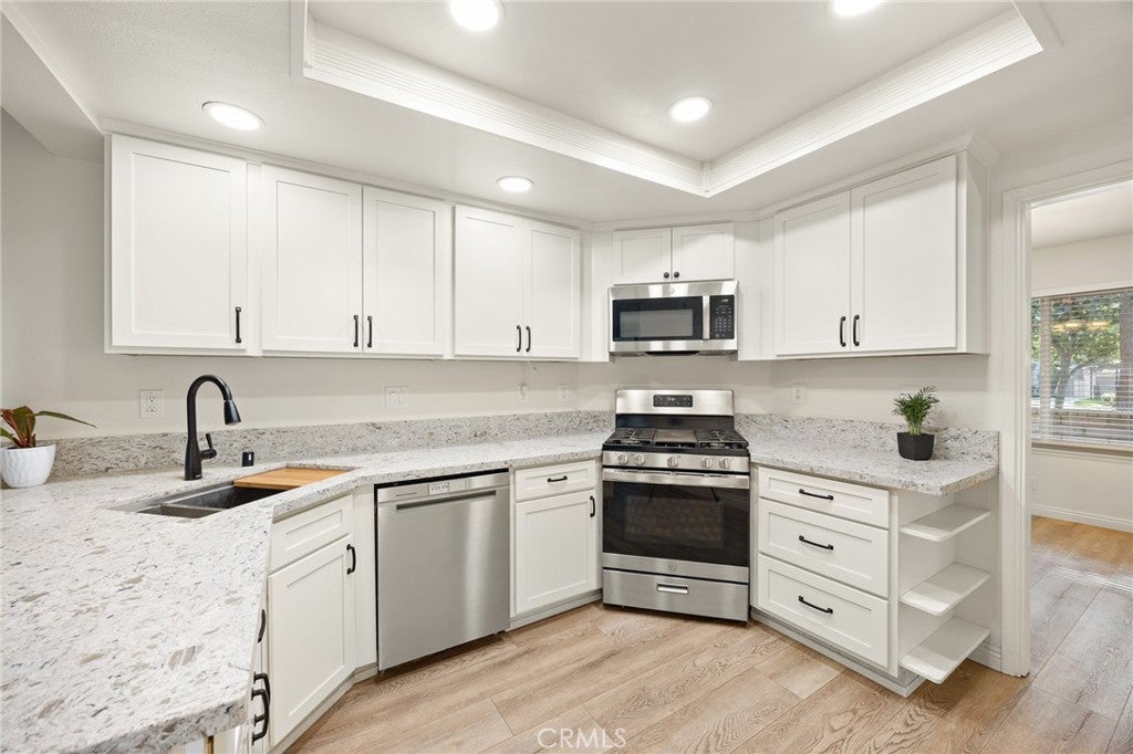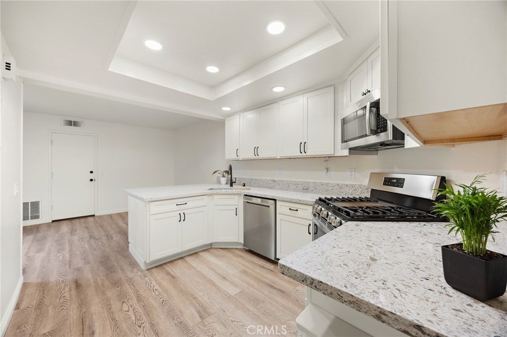 Fall in love with this exquisitely remodeled and beautifully designed California Spanish townhome, perfectly nestled within a peaceful, tree lined community in Rancho Cucamonga. Thoughtfully crafted with style, comfort, and sophistication in mind, this residence blends modern luxury with timeless charm, creating a true sanctuary for both relaxation and entertaining. Experience the very best of Southern California living with resort style amenities, including a sparkling swimming pool, soothing hot tub, outdoor BBQ area ideal for weekend gatherings, two full-size tennis courts, and a spacious clubhouse for private events. Ideally located just moments from scenic hiking and biking trails, lush parks, top golf course, Costco, dining, major freeways, and adjacent to Central Elementary School, this home combines convenience and lifestyle in one perfect package. Step inside to discover a bright and airy open floor plan, enhanced by new wood plank flooring and abundant natural light streaming through large, energy efficient windows creating a warm, welcoming atmosphere throughout. At the heart of the home, the gorgeously renovated kitchen features custom all wood KraftMaid shaker cabinetry, sleek Quartz countertops, premium stainless steel appliances, designer recessed lighting, and a chic bar seating area, perfect for casual dining or entertaining guests. Two elegant dining spaces provide versatility for both everyday meals and special occasions. Upstairs, retreat to the spacious primary suite, a peaceful haven offering comfort and tranquility. The three beautifully updated bathrooms showcase modern vanities, and elegant finishes, while the bedrooms feature plush new carpeting for added warmth and comfort. The living and dining areas open seamlessly to the outdoor space, creating effortless indoor outdoor flow perfect for morning coffee or evening gatherings under the stars. With its spacious layout, refined upgrades, and prime location, this exceptional townhome offers room to breathe, space to grow, and a perfect setting to relax, entertain, and create lasting memories a truly extraordinary place to call home.