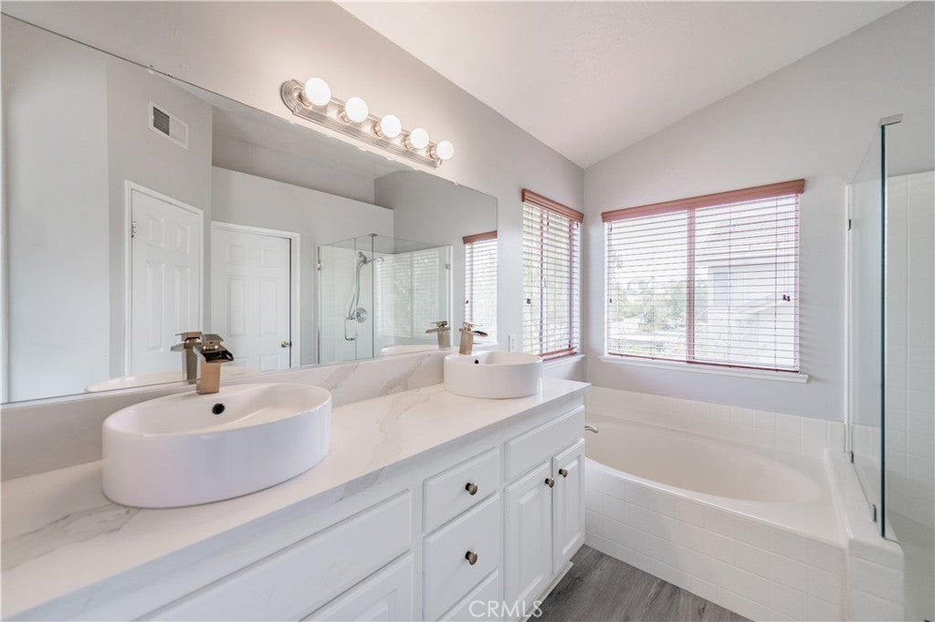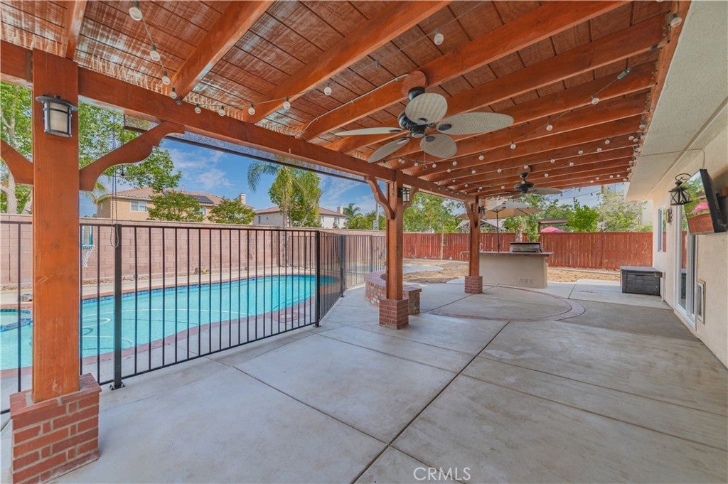 Exquisite Vintage Reserve Estate is Upgraded Four-Bedroom Residence with Bonus Suite in the Prestigious Murrieta School District. This distinguished four-bedroom residence, complete with a spacious bonus suite, is located within the highly esteemed Murrieta School District and offers an elevated standard of living ideal for families seeking space, elegance, and comfort. The interior has been extensively upgraded to reflect refined taste and quality craftsmanship. Throughout the home, premium hardwood flooring lends a timeless aesthetic while ensuring durability. At the heart of the residence lies a remodeled gourmet kitchen, meticulously designed for culinary excellence and appointed with countertops, custom-built cabinetry. The expansive master suite serves as a private retreat, featuring a redesigned walk-in closet and a luxuriously appointed en-suite bathroom, offering a serene and sophisticated environment. Occupying a premium lot, the property showcases sweeping city views and includes a beautifully maintained swimming pool, outdoor BBQ island and sitting area - Perfect for both entertaining guests and private relaxation. Additional enhancements include FULLY PAID OFF Solar Panels, New flooring & baseboards, New pool vacuum, New appliances, New irrigation system, total upgrades over $78k. Ideally positioned, the home is walking distance of Buchanan Elementary School and a brief 5-7 minute driving to Freeways. Its prime location also provides convenient access to the local library, major shopping centers, and key transportation corridors. Blending timeless architectural design with modern upgrades and an enviable location, this exceptional residence represents a rare opportunity to own a truly remarkable home in the prestigious community of Murrieta with no HOA. All information provided is deemed reliable but not guaranteed. Buyers and their agents are strongly encouraged to independently verify all facts and details to their satisfaction.