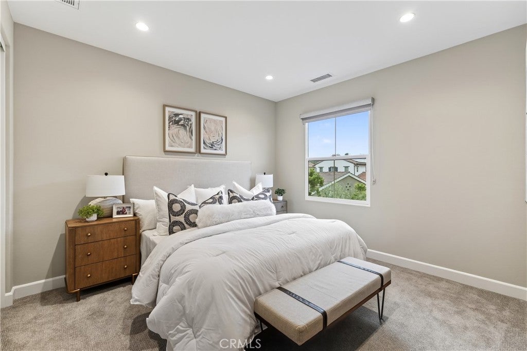 Beautiful home in Eastwood Village. This residence features a modern kitchen with sleek white cabinetry, a large center island, white Caesarstone countertops, and stainless steel appliances, including a refrigerator. The open-concept layout offers a spacious living room and a separate dining area. All new cabinet in full house.The home includes 4 bedrooms, highlighted by a generous primary suite with soaring ceilings and a large walk-in closet. The downstairs bedroom is comfortably sized. A full laundry room with a sink, washer, and dryer is also included. Convenient nearby parking! A community park, two pools, multiple BBQ areas, a basketball court, and tennis courts are just one block away. Zoned for top-rated Irvine schools and within walking distance of Eastwood Elementary. Close to grocery stores, shopping, restaurants, and bars.