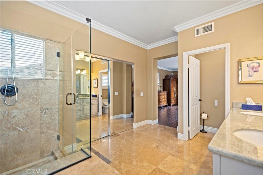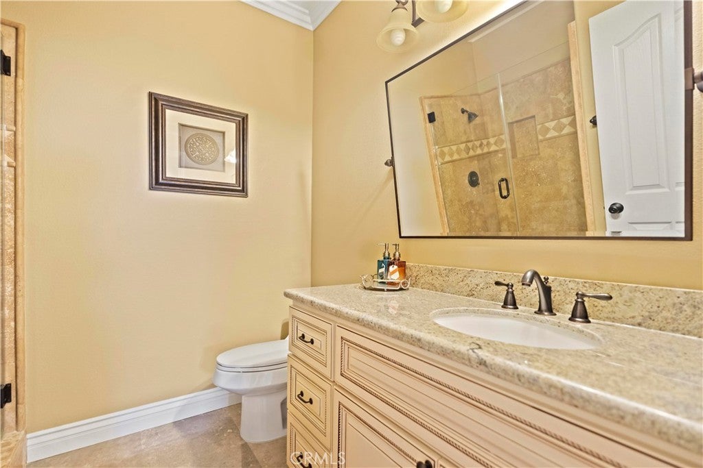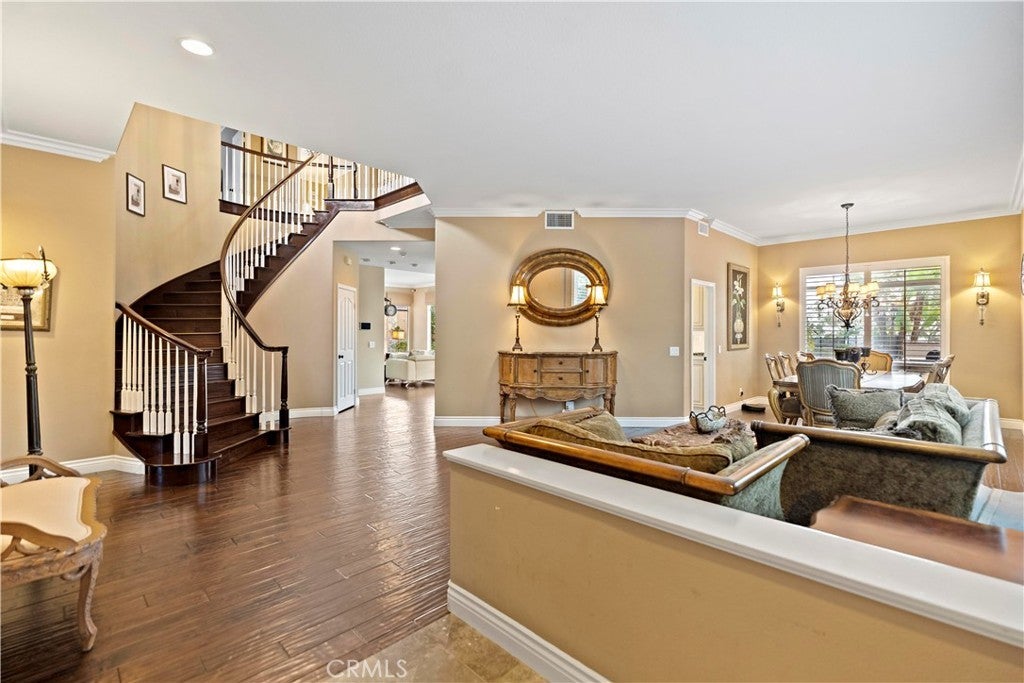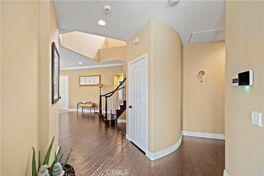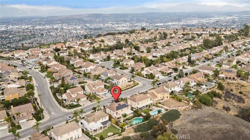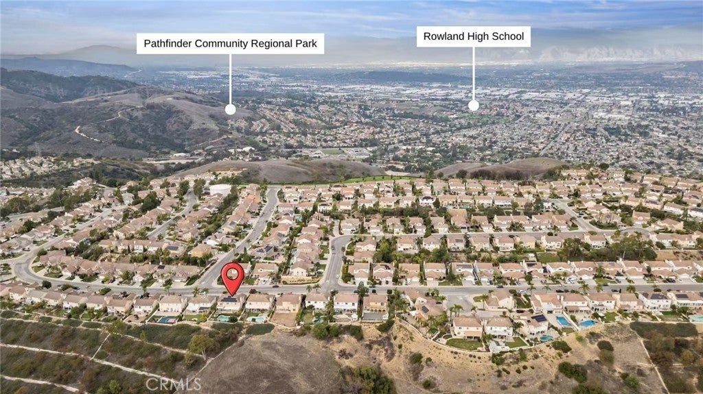 Perched in the desirable Vantage Pointe community of Rowland Heights, this expansive view home offers 6 bedrooms, 5 bathrooms and approx. 3,551 sq.ft. of living space on an oversized ~16,500+ sq.ft. lot. Thoughtfully updated over the years, the interior features double-door entry, high ceilings, crown molding, recessed lighting, plantation shutters and beautiful wood flooring that flows through the main living areas. The flexible floor plan includes two bedrooms and two bathrooms on the main level, including a generous ensuite that can function as a guest or multi-generational suite. The remodeled kitchen opens to the family room and showcases quartz countertops, resurfaced cabinetry, stainless steel appliances and a built-in KitchenAid refrigerator. Upstairs you’ll find four additional bedrooms and three bathrooms, highlighted by a spacious primary suite with double-door entry, upgraded spa-style bath, and a private balcony capturing sweeping city-lights views. The resort-style backyard is ideal for entertaining, offering a sparkling pool and spa, built-in BBQ, covered patio and lush palms. On clear evenings, you can relax in the yard or on the primary balcony and watch the Disneyland® fireworks light up the Orange County skyline. Energy-conscious features such as solar panels and an electric-car charger add everyday convenience, while the location puts you close to parks, markets, shopping, the Rowland Heights Community Center, and easy access to the 60 and 57 freeways. Solar panel is leased.