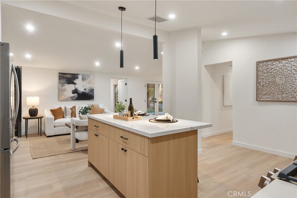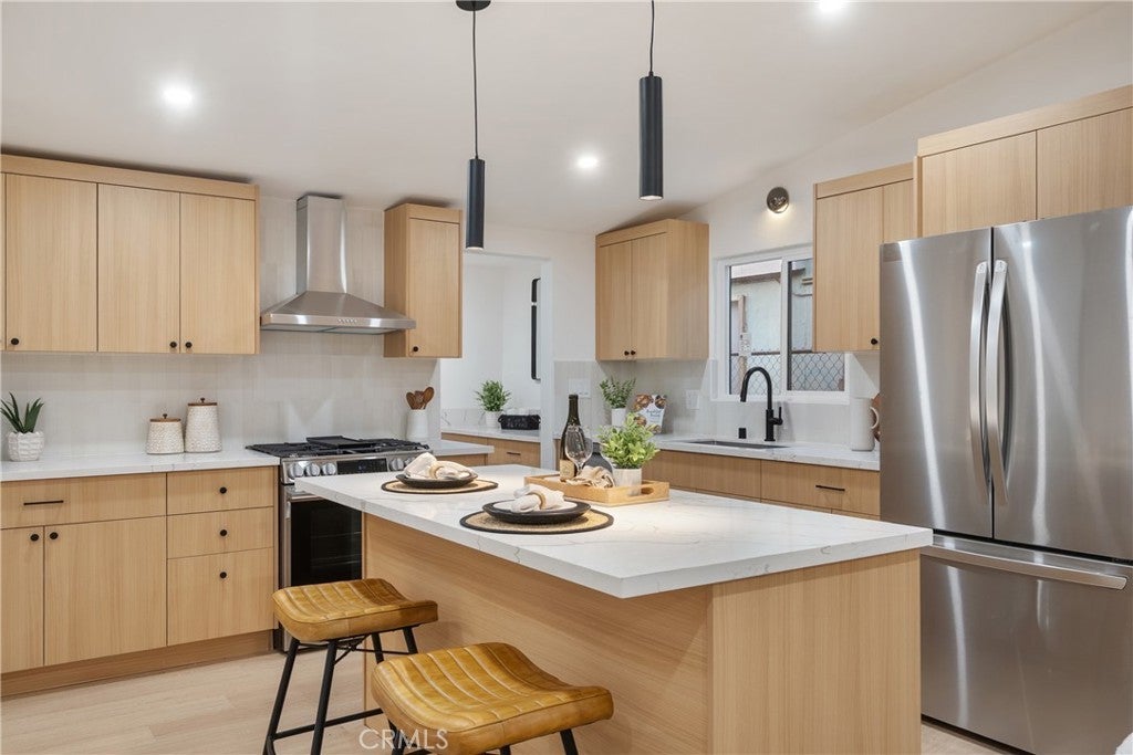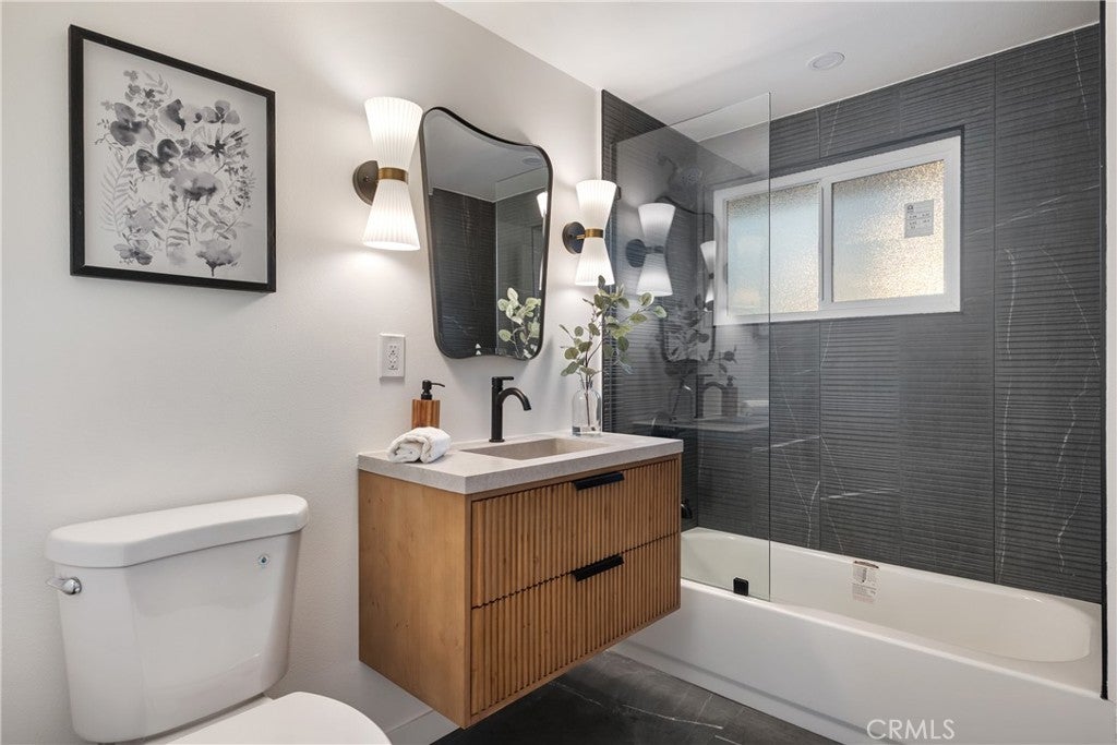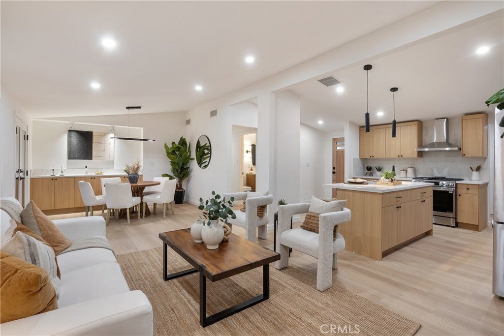 Welcome to this beautifully remodeled 4 bedroom, 2 bathroom, two-story home located in the highly desirable city of Lakewood. Thoughtfully updated from top to bottom, this residence blends modern design with everyday functionality, offering a bright and stylish living experience. Step inside to an inviting open layout featuring a completely renovated kitchen equipped with quartz countertops, sleek European-style cabinetry, stainless steel appliances, and chic lighting. The spacious oversized master bedroom offers the perfect retreat, complete with his and hers closets and plenty of natural light. Both bathrooms have been tastefully upgraded with contemporary finishes. The dining room leads to the covered patio, ideal for relaxing or entertaining. Additional upgrades include an electric water heater, new electrical panel, and new interior/exterior finishes throughout. Situated near Cerritos and just minutes from the Los Cerritos Center, this home offers easy access to shopping, dining, parks, and the 605 freeway.