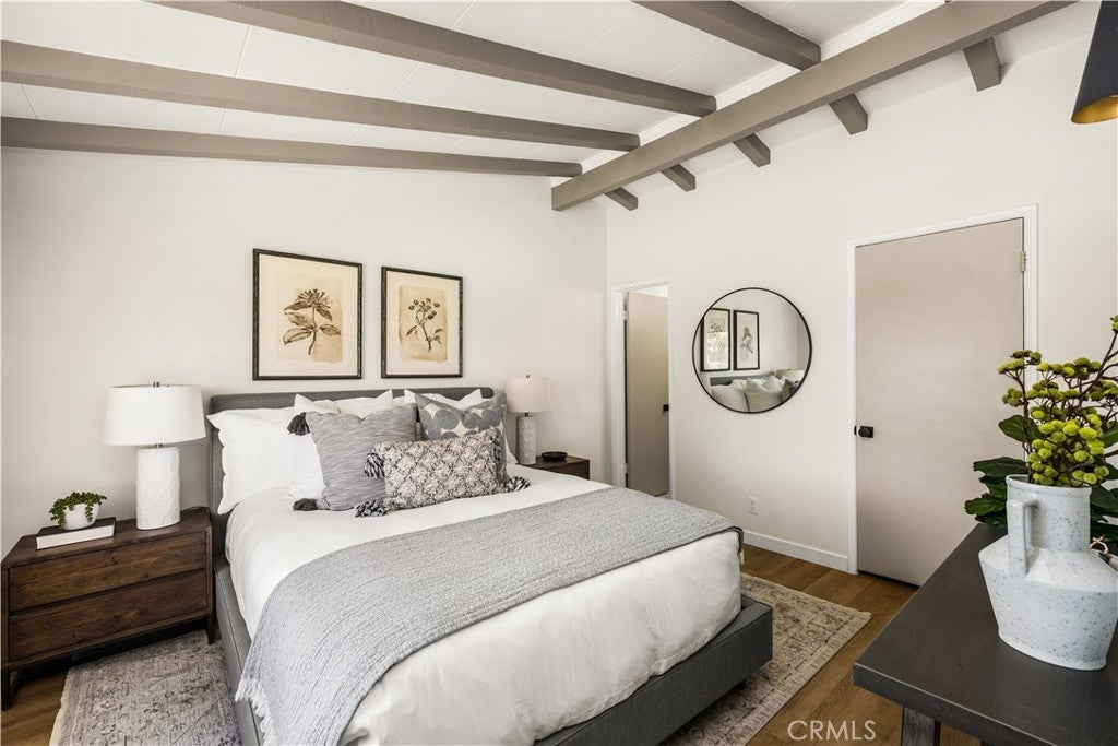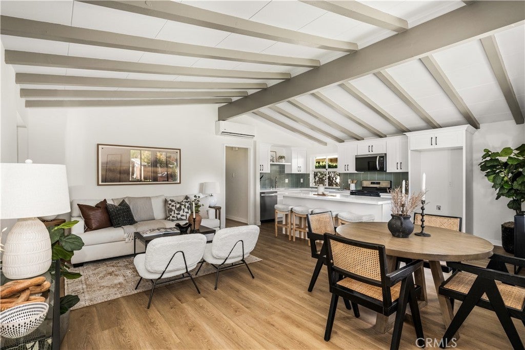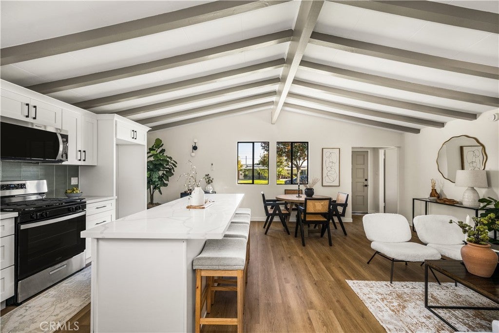 Welcome to this stunning 4-bedroom, 2-bathroom home, where you are greeted with a warm Mid-Century Modern vibe the moment you step inside. Thoughtful updates blend seamlessly with the clean lines and airy openness that define this timeless style. Inside, you'll find new flooring, fresh interior paint, and a bright, inviting layout. The brand-new kitchen features sleek new cabinetry, modern quartz countertops, new stainless-steel appliances, and updated fixtures — perfect for everyday living and entertaining. Both remodeled bathrooms offer contemporary finishes and a fresh, polished look. With four generously sized bedrooms, you'll have plenty of space for family, guests, or a home office. Additional upgrades include a new layer on the roof, providing long-term peace of mind. The backyard offers a versatile outdoor space ready for your personal touch and ideal for relaxing, gardening, or hosting friends and family. Conveniently located near schools, parks, shopping, and dining, this move-in-ready Anaheim gem delivers modern comfort with unmistakable Mid-Century Modern charm.