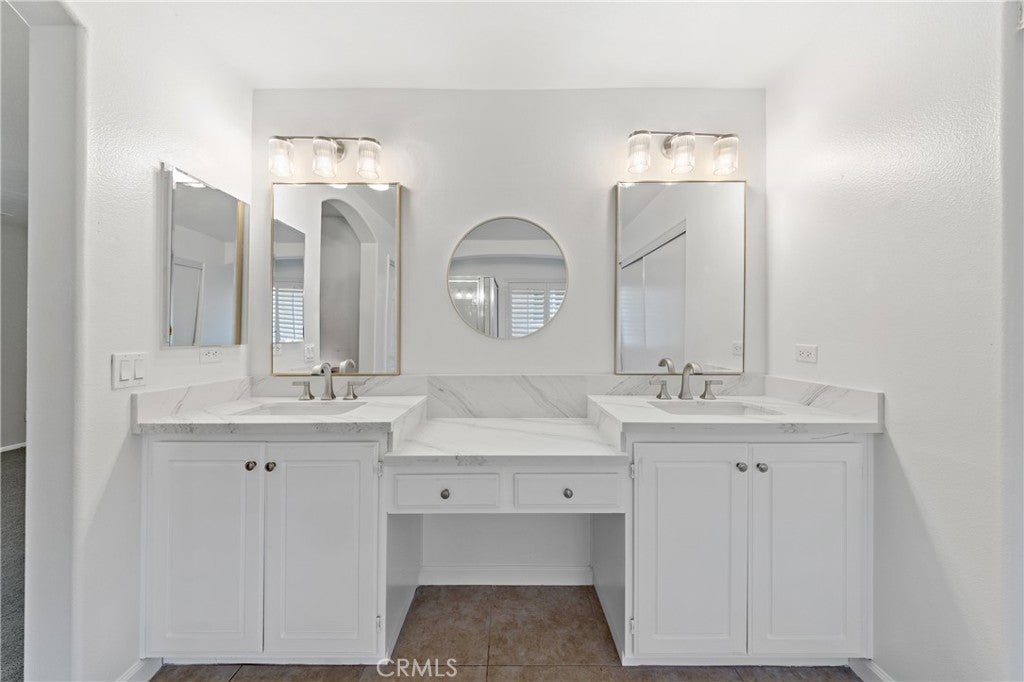 This beautifully renovated home in the coveted Newport Hill neighborhood boasts a prime location. Adjacent to the 215 and 15 FWY, it’s surrounded by parks, schools and shopping centers. Situation on a wide street, the house features a widened driveway and a three-car garage. The front yard is covered in artificial turf. Large double doors open to a spacious living room and formal dining area. A large family room with a fireplace connects to the open kitchen, which includes a media niche, a central island with a breakfast bar, pantry, and recessed light throughout the house. The downstairs area features tiled floors, as do all the bathrooms. The second-floor features brand-new carpeting. Upstairs, the bedrooms surround a large multi-purpose room that can be game room or entertainment room. The master suite features a fireplace and a built-in entertainment center, with a separate room behind a mirror that can be used as an office and includes a walk-in closet. Wooden shutters throughout the house! The back yard features a beautiful patio canopy and stamped concrete slabs. Low HOA fees further enhance the appeal of this clean and tidy neighborhood. The neighbors are all very friendly and quiet.