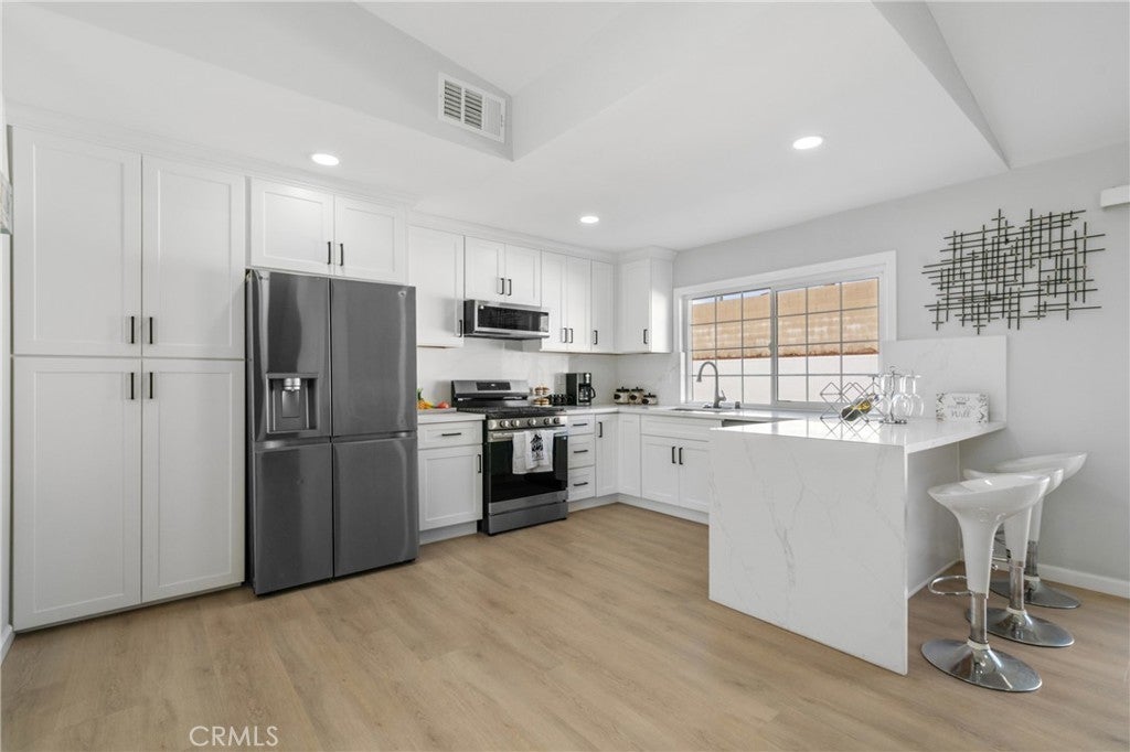 Beautifully renovated 3-bedroom, 1.75-bath single-story home featuring a modern open-concept layout designed for comfortable everyday living and effortless entertaining. The home offers a fully updated kitchen with new cabinetry, countertops, and appliances, along with tastefully remodeled bathrooms. New flooring extends throughout the home, complemented by recessed lighting and fresh interior finishes that create a bright, welcoming atmosphere. Major system upgrades include a brand-new roof and an upgraded 200-amp electrical panel. The exterior has been refreshed with new paint and attractive landscaping, with a landscaped front yard that enhances curb appeal. This move-in-ready property blends modern updates, functional design, and a clean, turnkey feel.