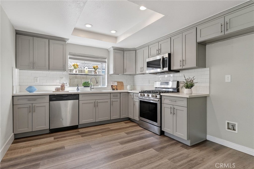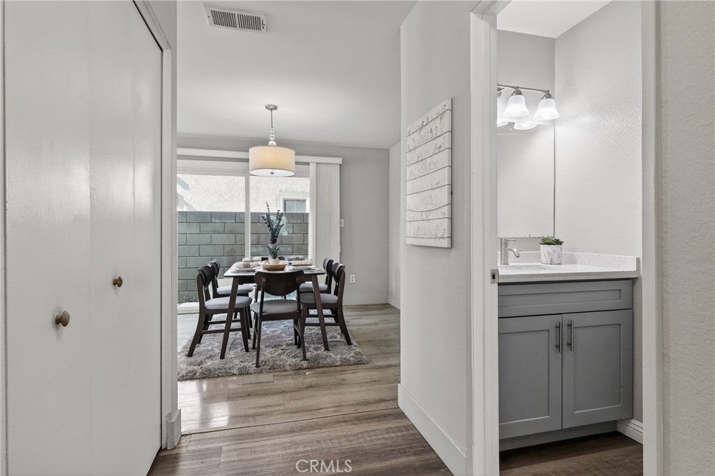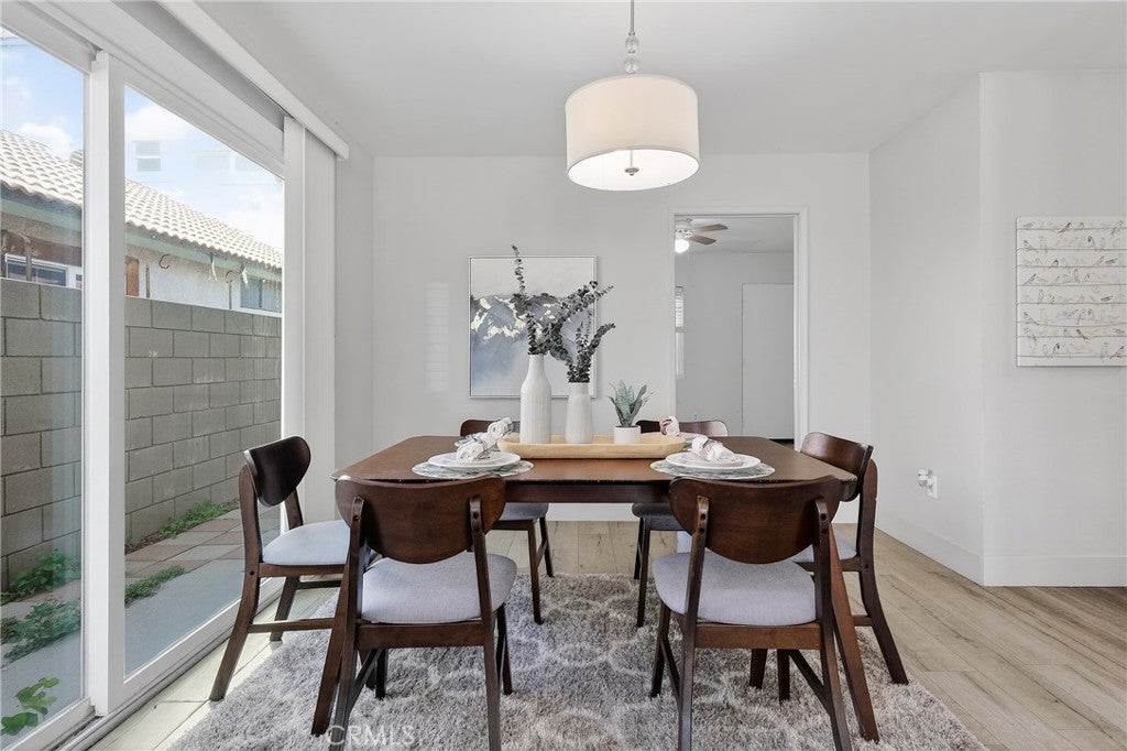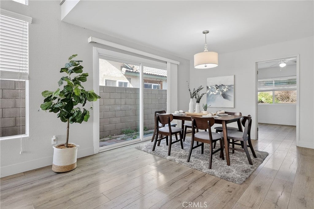 Situated in a sought-after Rancho Cucamonga neighborhood, this tastefully updated residence offers 3 bedrooms, 2.5 bathrooms, and approximately 1,712 square feet of thoughtfully designed living space. Originally built in 1978, the home has been refreshed with modern touches while maintaining a warm and inviting feel. Highlights include vaulted ceilings, abundant natural light, updated flooring, and dual-pane windows throughout. The living room flows seamlessly into the dining area, where a sliding glass door provides convenient access to the side yard and enhances indoor-outdoor living. The remodeled kitchen features quartz countertops, shaker-style cabinetry, stainless steel appliances, and a spacious dining area with sliding doors opening to the backyard. A desirable downstairs bonus room with an adjacent bathroom offers versatile use, ideal for guests, a home office, or additional living space. Upstairs, the primary bedroom is accompanied by two additional bedrooms and a well-appointed hallway bathroom. An upstairs loft provides a flexible area suitable for a workspace, study, or additional lounge. The backyard includes a covered patio and generous outdoor space, well-suited for entertaining or everyday enjoyment, with room for future personalization. Additional features include an indoor laundry area and an attached two-car garage. Conveniently located near schools, parks, hiking trails, shopping at Victoria Gardens, and major freeways, this home offers a blend of functionality, comfort, and a desirable location.