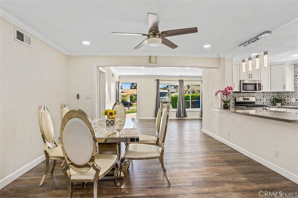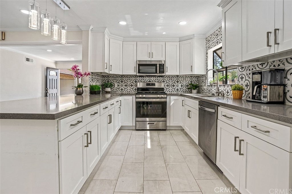 Lovely turnkey home located right off 60 highway and S 7th Ave in the quiet neighborhood in Hacienda Heights. The home was remodeled with great AC and heating system, fresh paint throughout the house, new vinyl floor, crown molding, casing, and baseboard. Kitchen was updated with new appliances including range, dishwasher, disposal, sink, quartz countertop, tile flooring, backsplash, and cabinets. Open patio and side yard easy to maintain. New exhaust fan in the attic to keep the house cool in hot weather and energy saving. Brand new Genie Signature quiet belt drive garage opener. Huge front yard to park multiple cars and RV and boats. Seller is relocating, please come and see this cute home.