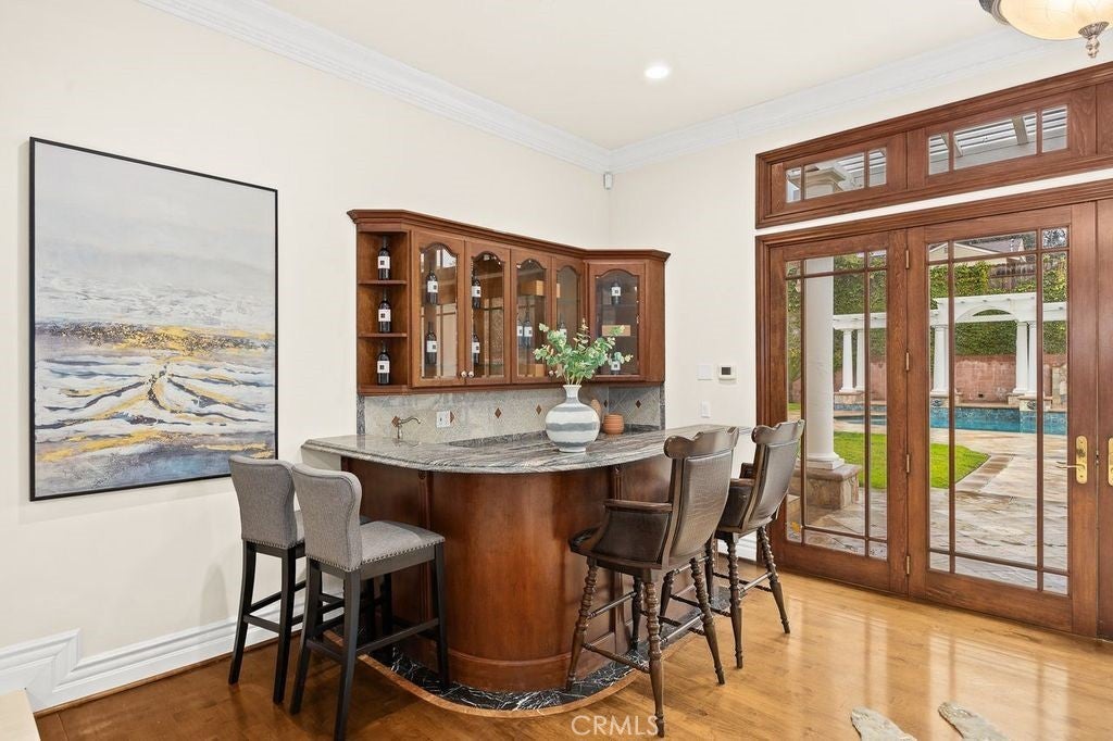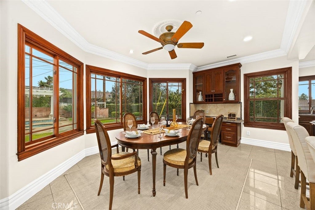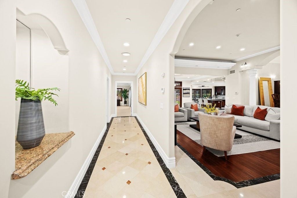 Welcome to the award-winning Arcadia School District home! This professionally designed, luxurious single-story residence with breathtaking mountain views features 4 bedrooms, 3.5 bathrooms designed with an open-concept layout and soaring ceilings. 2004 Custom Rebuilt. This home boasts high-end cherry wood cabinetry, premium appliances, marble flooring, and a living room with bay windows. The expansive family room is equipped with a Bose surround sound system, hardwood floors, and a custom-built bar. Elegant French double doors open to a stunning backyard featuring a Roman-style waterfall swimming pool. The primary bedroom includes a beautiful vanity, shower, and jacuzzi tub. A dedicated office space allows for multiple users simultaneously. This home also features both a Western open-style kitchen and a separate wok kitchen, a formal dining room with a built-in pantry, an independent laundry area with granite countertops and custom cabinetry, and two grand Swarovski chandeliers that enhance the luxurious ambiance. This is a perfect home for both relaxation and entertainment—don’t miss this incredible opportunity!