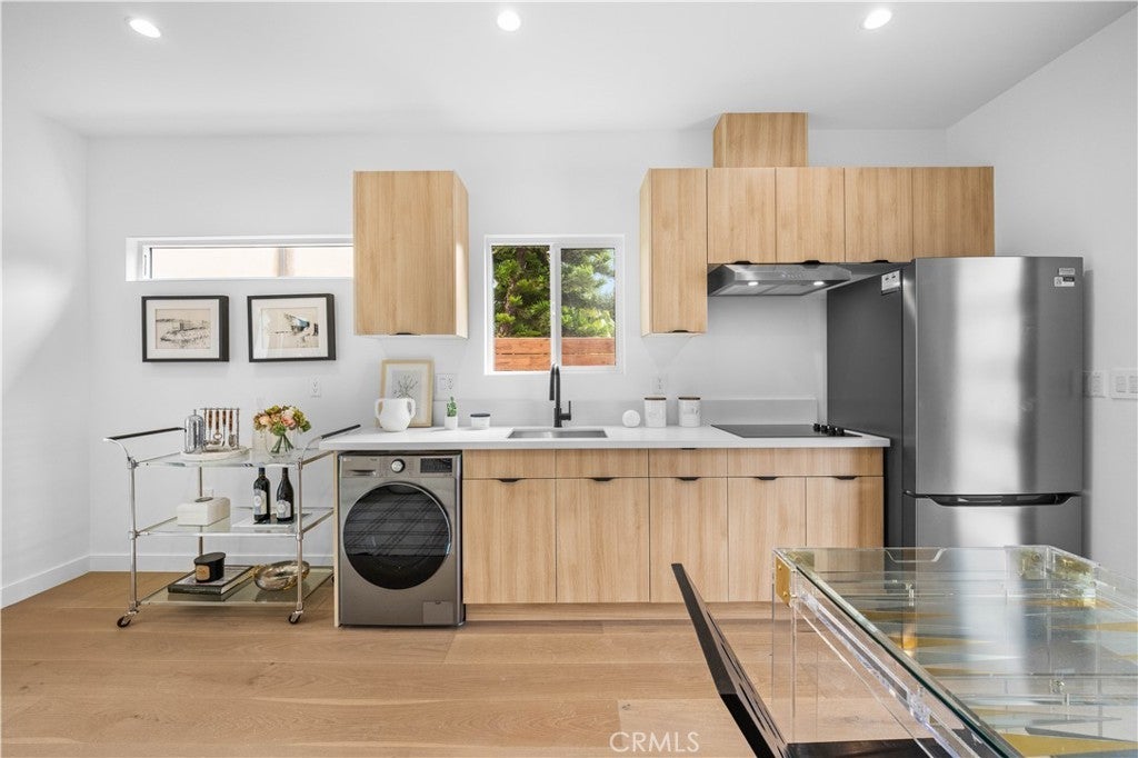 An extraordinary opportunity in one of the Westside’s most sought-after neighborhoods, this timeless corner-lot residence has been masterfully renovated and thoughtfully expanded. The main home offers 3 bedrooms and 1 designer bath, filled with natural light through expansive windows and framed by wide-plank oak floors. An open, free-flowing layout connects the living and dining areas to a chef’s kitchen with custom cabinetry, quartz surfaces, and premium stainless steel appliances. Complementing the main home, a newly constructed 383 sq ft Accessory Dwelling Unit (ADU) stands as a fully independent residence with its own private entrance. Perfect for multi-generational living, a guest retreat, or income-producing rental, the ADU adds rare versatility and long-term value. Outdoors, curated landscaping blends modern hardscape, a fire-pit lounge, and mature greenery to create an inviting retreat. A six-car parking capacity, including an extra-wide driveway, ensures convenience for residents and guests alike. The location is unrivaled—just 2.5 miles to UCLA, 5 miles to Santa Monica State Beach, minutes to Century City, and one block from the highly regarded Westwood Charter Elementary School. This is more than a home; it is a lifestyle investment combining refined design, income potential, and premier Westside living.