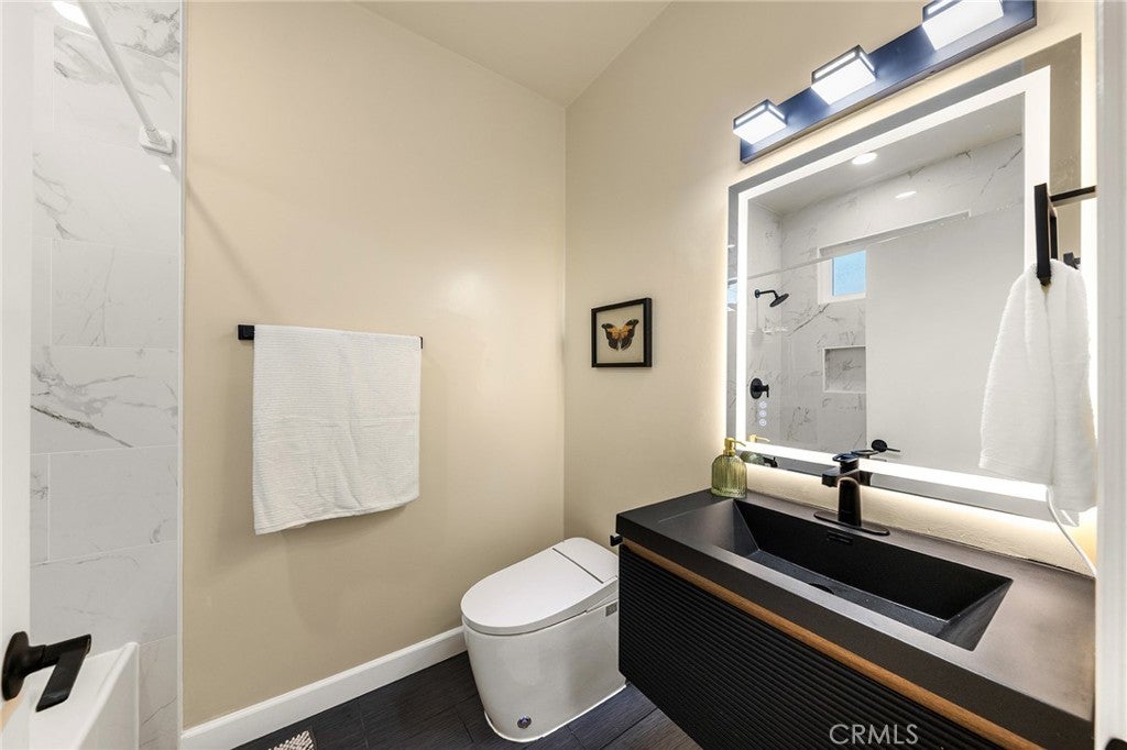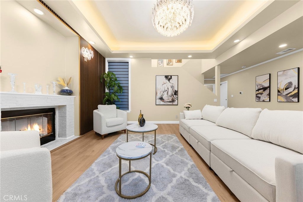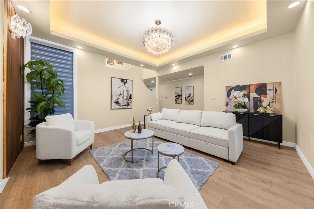 Discover a completely upgraded residence that truly resembles a brand-new home! This exceptional and stunning property is a must-see. It features a brand-new roof, doors, and windows, as well as a state-of-the-art A/C system, a modern kitchen and bathroom, new appliances, and beautifully landscaped front and back yards. The rooftop deck and high ceilings further enhance the space, complemented by a secure fence and solar lighting. Step inside to admire the custom-made, imported crystal chandeliers with adjustable lighting and the living room's unique ceiling design. The office seamlessly connects to the private rooftop deck, ensuring that every room is both spacious and filled with natural light. Enjoy amenities like skylights, smart home appliances and toilets, LED mirrors, and a walk-in closet. The waterfall-style island platform serves as a stunning centerpiece in the kitchen, while the spacious staircase is adorned with large tempered safety glass. Additional features include a double garage with epoxy flooring.Termite completed . Nestled in a safe, quiet neighborhood with friendly neighbors, this home boasts unique architecture and thoughtful design. Welcome to your dream home!