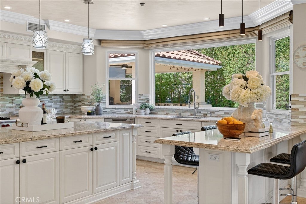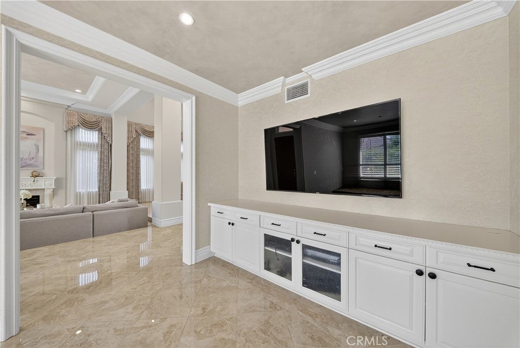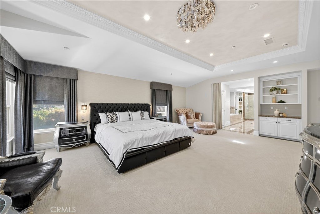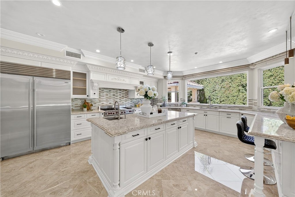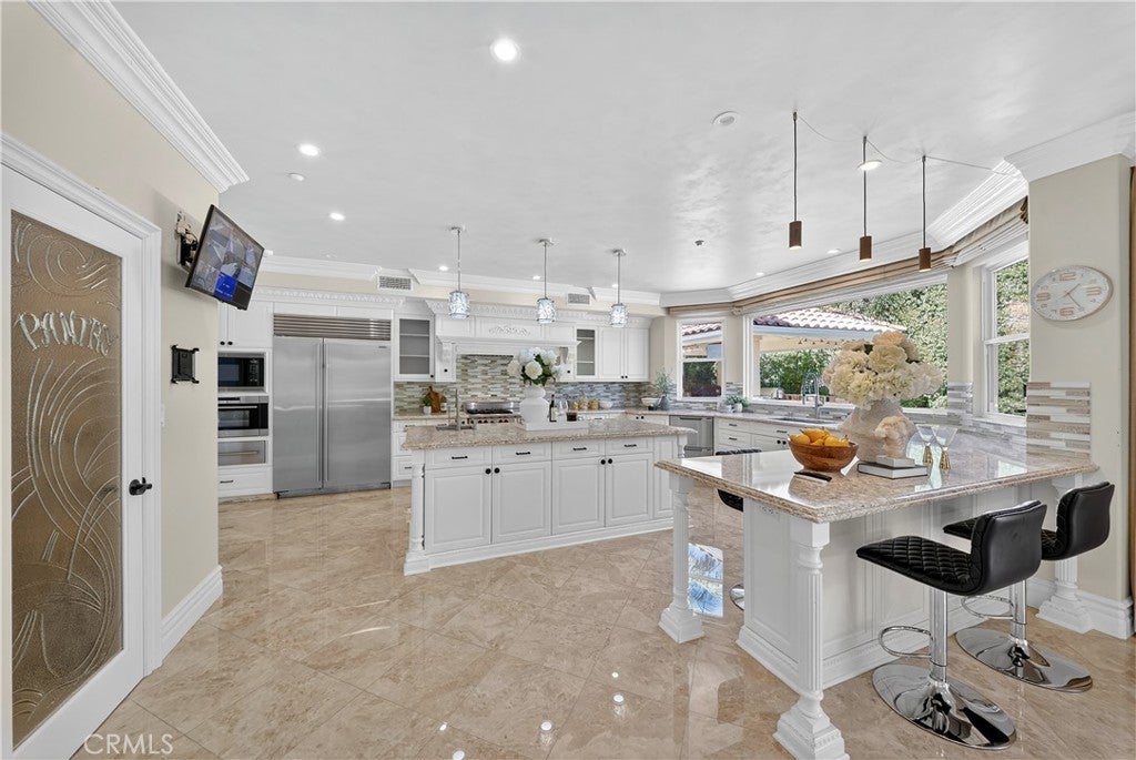 A masterfully remodeled residence in La Verne’s prestigious gated community of Marshall Canyon Estates. With over $700,000 in recent upgrades, this home has been reimagined into a private retreat where every detail speaks to elegance, comfort, and functionality. Inside, soaring hand-painted ceilings and brand-new flooring set the stage for refined living. The chef’s kitchen has been completely redesigned with custom cabinetry, a top-of-the-line Sub-Zero refrigerator and professional-grade Wolf appliances—perfect for both everyday meals and entertaining. Each bedroom has been transformed into a private suite with a newly added full bathroom, while the primary suite impresses with a custom walk-in closet and spa-inspired bathroom featuring dual vanities and dual walk-in showers. The home features a 4-zone central HVAC system and a well-designed layout with two bedrooms and spacious common areas on the first floor, and the luxurious primary suite plus two additional bedrooms on the second floor. Outdoors, the property shines with a fully redesigned landscape. A stunning infinity-edge pool, custom-built pergola, and full outdoor kitchen with BBQ station, refrigerator, heaters, and mist-cooling system create the perfect setting for year-round enjoyment. Located in a guard-gated community within an award-winning school district, this home offers unmatched privacy, security, and convenience. Exceptional craftsmanship and luxury upgrades at every turn make this property not just a home, but a lifestyle.
