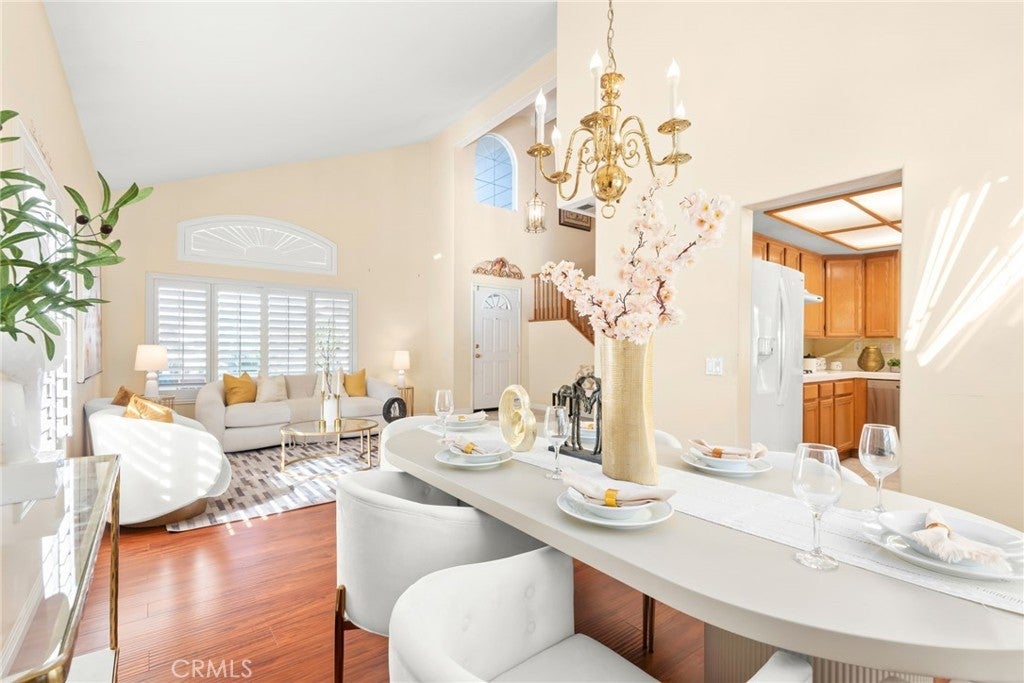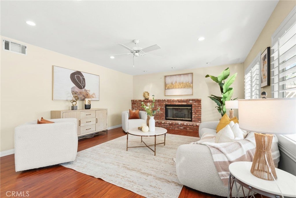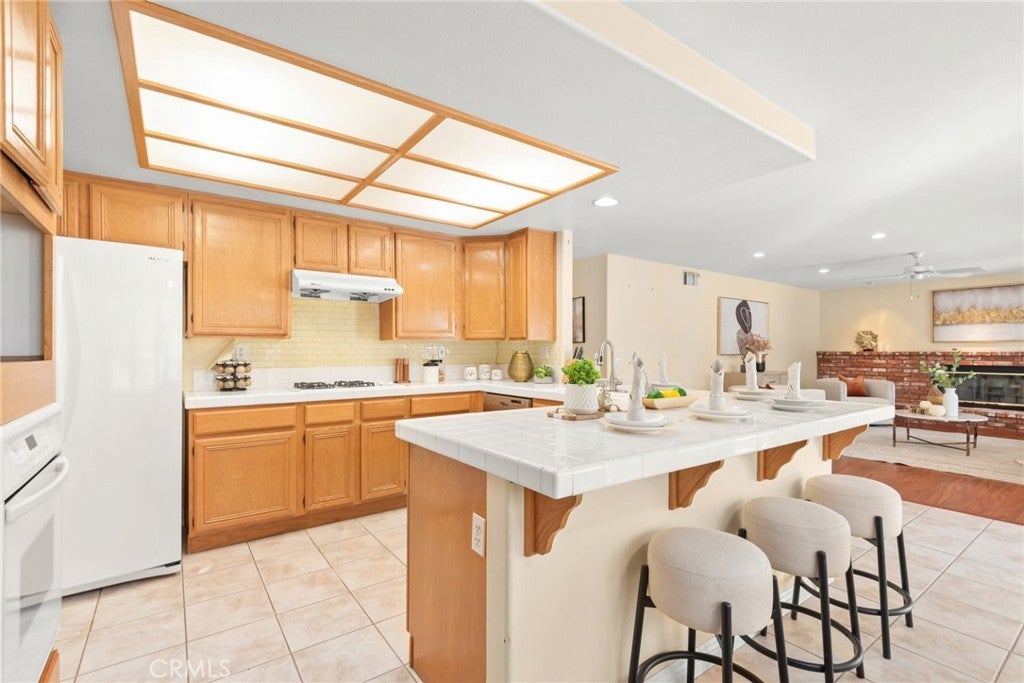 **Well-Maintained Pool Home with Functional Layout in a Desirable Family Neighborhood** This beautifully maintained home has been lovingly cared for by the current owner for many years, and it shows throughout. The floor plan is practical, comfortable, and well suited for today’s lifestyle. The home features **formal living and dining rooms**, a **spacious kitchen** with breakfast bar seating, a casual dining nook, and ample cabinetry for storage. The **large family room with a brick fireplace** offers a warm and inviting space for everyday living and entertaining. There are **5 bedrooms and 3 bathrooms**, including **one bedroom and one full bathroom on the main level**, ideal for guests, extended family, or a home office. Upstairs, the **generous primary suite** includes **walk-in closets** and a well-appointed bathroom with **separate tub and shower**, along with **three additional well-sized bedrooms**. The **backyard is perfect for entertaining**, featuring mature landscaping and a **beautiful in-ground swimming pool**. A **built-in BBQ with refrigerator** adds convenience for outdoor gatherings. The yard is fully enclosed with **block wall fencing and wrought-iron gates**, providing both privacy and security.Additional highlights include neutral interior finishes, upgraded laminate wood flooring, plantation shutters downstairs, ceiling fans throughout, and a **large 3-car garage with built-in storage cabinetry**. Located in a **quiet, family-friendly neighborhood**, within **walking distance to all three levels of schools**, and conveniently close to shopping, dining, and major freeways. **Well cared for, thoughtfully laid out, and truly move-in ready.**