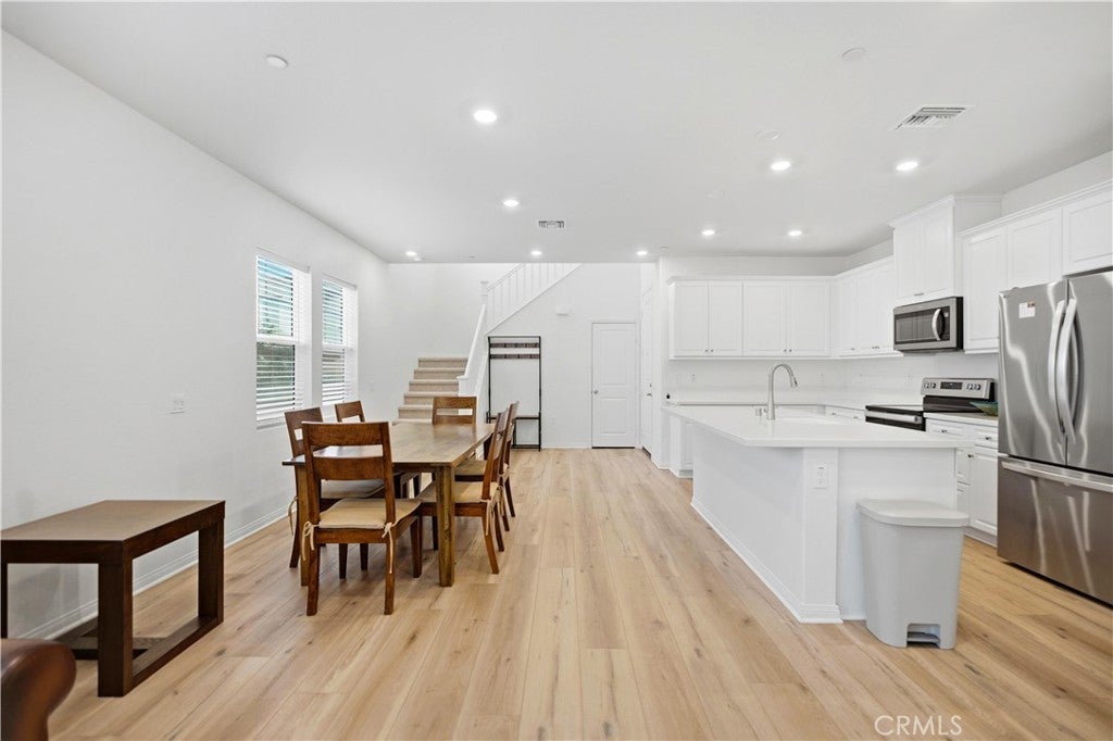 Welcome to this beautifully upgraded detached condo located in the highly desirable Rembrandt Community, a modern and newer neighborhood ideally situated directly across from a brand-new town shopping center, offering exceptional convenience for dining, shopping, and daily living. This spacious and thoughtfully designed home features approximately 2,100 square feet of living space with no common walls, providing the privacy and feel of a single-family residence. The functional floor plan offers 4 bedrooms and 3 bathrooms, plus a versatile second-floor loft— perfect for a home office, media space, or kids’ study area. The property has tons of upgrades and is located in a prime location within the neighborhood. The main level showcases an open-concept kitchen with a center island, seamlessly connecting to the dining and living areas, ideal for entertaining and modern family living. Front yard landscaping is conveniently maintained by the HOA, allowing for low-maintenance ownership. Residents enjoy resort-style community amenities including a pool, spa, meeting center, pickleball courts, BBQ area, and a beautifully maintained park. The home also includes leased solar, offering potential energy efficiency benefits. This home combines modern design, functional space, and prime location — an excellent opportunity to own in one of the area’s most sought-after newer communities.