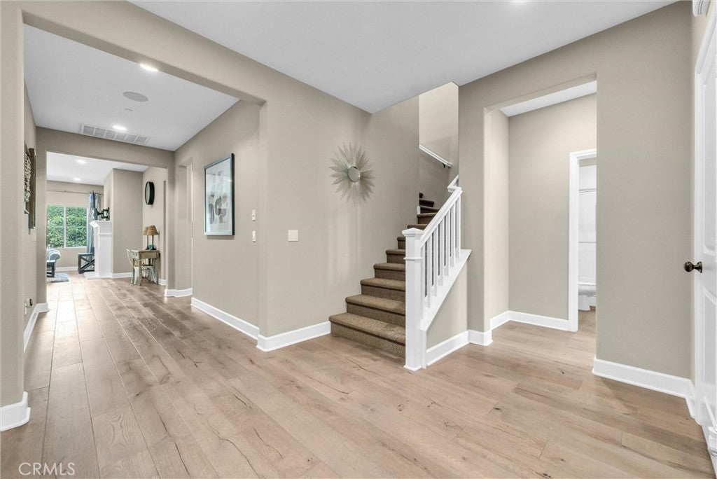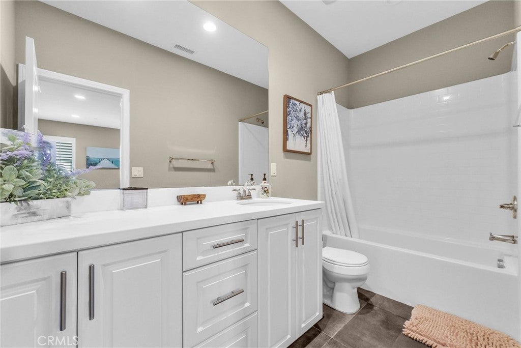 Welcome to this beautifully upgraded former model home in the highly desirable Ontario Ranch community, offering a rare and functional layout ideal for today’s modern living. Featuring a first-floor primary suite, this home provides privacy and convenience, complete with a spacious walk-in closet and spa-inspired ensuite bath. The main level also includes a secondary bedroom and full bathroom, perfect for guests, extended family, or a home office. Upstairs, you’ll find two additional bedrooms, a full bath, and a large loft/family room ideal for a media space, playroom, or study area. As the former builder model, this home showcases over $100K in premium upgrades, including a fireplace in living room, an upgraded kitchen with modern finishes, quality laminate flooring, recessed lighting, designer touches throughout, and a professionally finished backyard. The expansive California Room creates seamless indoor-outdoor living, perfect for entertaining or relaxing year-round. Located in Ontario Ranch, residents enjoy low HOA and favorable tax rates, along with resort-style community amenities including a pool, clubhouse, parks, tot lots, game room, and basketball courts. Conveniently close to major freeways, schools, shopping, Costco, Ontario Mills, 99 Ranch Market, and Ontario International Airport, this location offers both lifestyle and convenience. Move-in ready and packed with upgrades, this exceptional home combines luxury, function, and location — a rare opportunity you don’t want to miss.