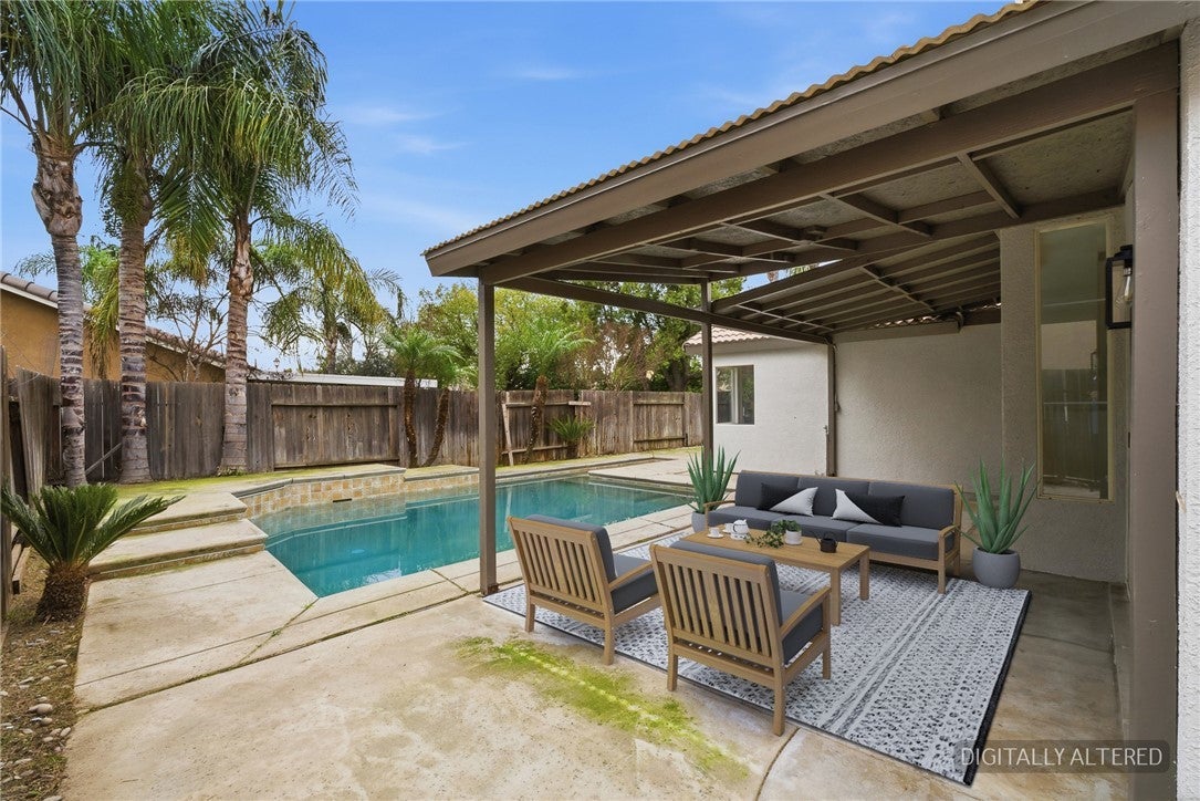 * RV PARKING, POOL, CORNER LOT, OPTIONAL 5th BEDROOM* Welcome to 5201 Sierra Caves Ave in Bakersfield — a beautifully updated, single-level home with sparkling pool that is fully turnkey and move-in ready! This 4-bedroom, 2-bath home includes a versatile dining room that can easily function as a 5th bedroom, home office, playroom, or flex space to fit your needs. Thoughtfully upgraded throughout, the home features fresh interior and exterior paint, upgraded flooring, and new fixtures that add a designer touch at every turn. Situated on a desirable corner lot, the property offers exceptional parking and accessibility. The extended driveway runs through to the backyard, creating drive-through access and ample space for RV parking, boats, trailers, or multiple vehicles — a rare and highly sought-after feature. Step into the luxurious backyard, complete with a relaxing pool perfect for enjoying Bakersfield’s sunny days. With its flexible layout, extensive upgrades, and impressive outdoor features, this home checks all the boxes. Don’t miss the opportunity to own this move-in ready gem!