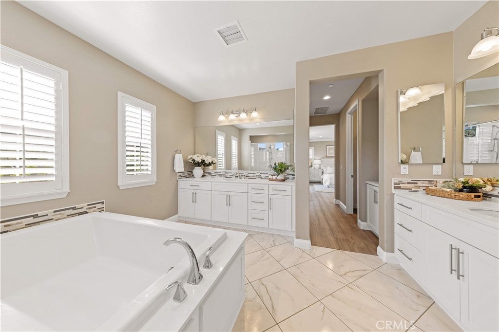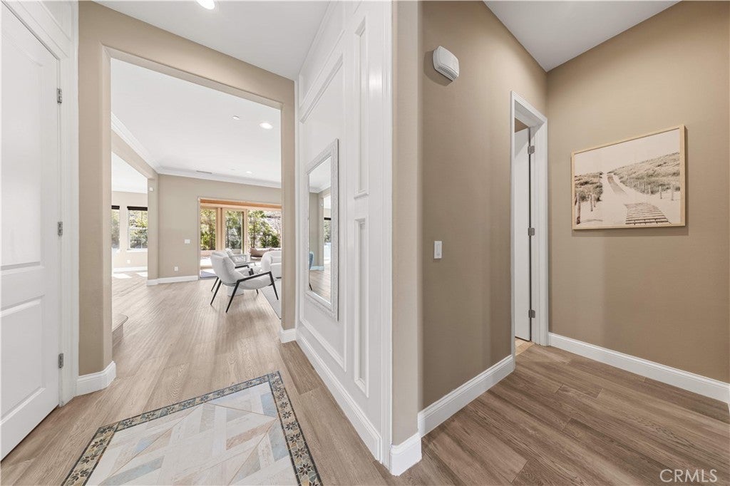 Welcome to 5951 Porto St, located in the highly desirable Vila Borba community of Chino Hills. Set on a premium corner lot with manicured landscaping and exceptional curb appeal, this home offers standout privacy with no rear neighbors and no direct front-door or driveway-to-driveway facing homes—a rare and valuable feature. Inside, enjoy a bright, open layout enhanced by tasteful custom details throughout. The dine-in kitchen is designed for both daily living and entertaining, featuring abundant cabinetry and counter space, a large center island, stainless steel appliances, and a butler’s pantry for added storage and prep. The adjoining family room is warm and inviting —perfect for relaxing or hosting guests. A unique highlight: every full bathroom includes a window (excluding the powder room), providing natural light and improved comfort. The main level offers a highly desirable expanded first-floor suite with an ensuite bathroom, created through a builder upgrade that converted the formal dining room into an oversized bedroom—ideal for multi-generational living, guests, or a private office. Upstairs, retreat to a spacious primary suite with dual sinks plus a makeup vanity, an oversized walk-in shower, a soaking tub, separate walk-in closets, and a private balcony overlooking the backyard. Three additional bedrooms, two full bathrooms, a conveniently located laundry room, a spacious loft, and excellent flow complete the second level. Step outside to a low-maintenance backyard designed for year-round enjoyment, featuring a California room and turf lawn—perfect for entertaining, relaxing, and making memories. Ideally situated in the acclaimed Chino Valley Unified School District, this home is assigned to top-rated Butterfield Ranch Elementary, Robert O. Townsend Junior High, and Chino Hills High School. Enjoy nearby parks, scenic walking paths, and dog-friendly amenities, with easy access to shopping, dining, and entertainment at The Shoppes at Chino Hills, plus convenient commuting via the 71, 91 Freeway. This exceptional home offers the perfect balance of privacy, functionality, lifestyle, and location—a must-see in Chino Hills.