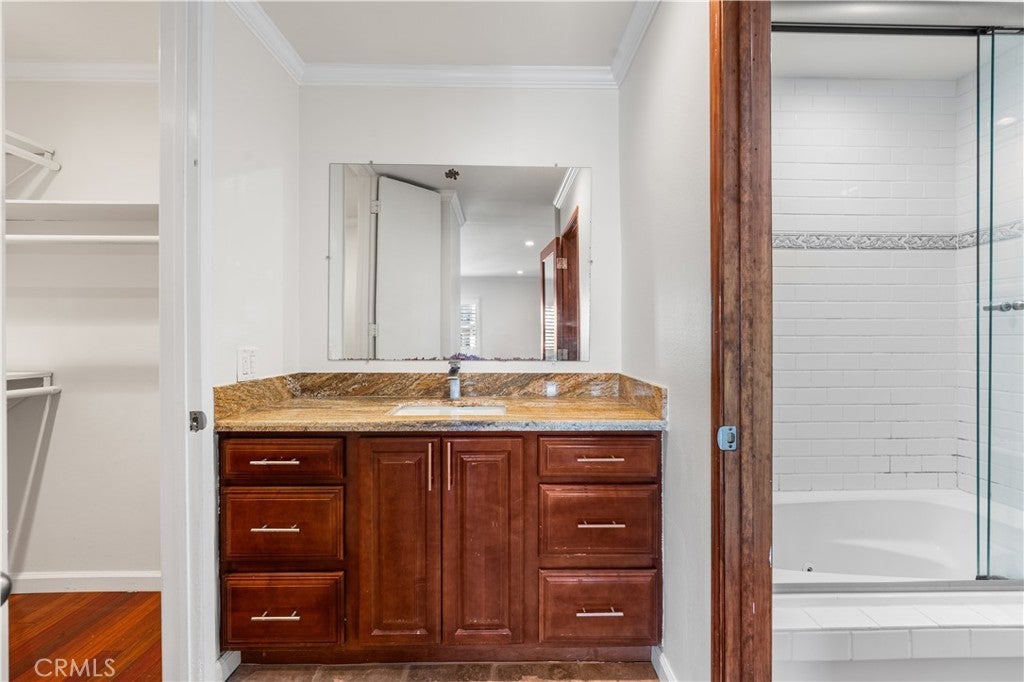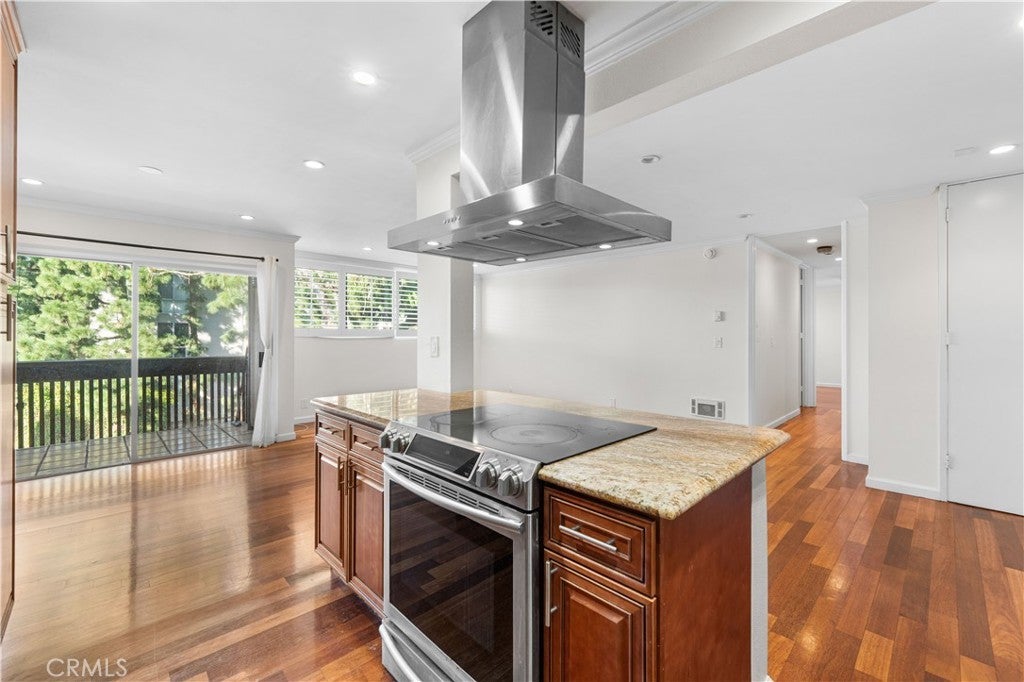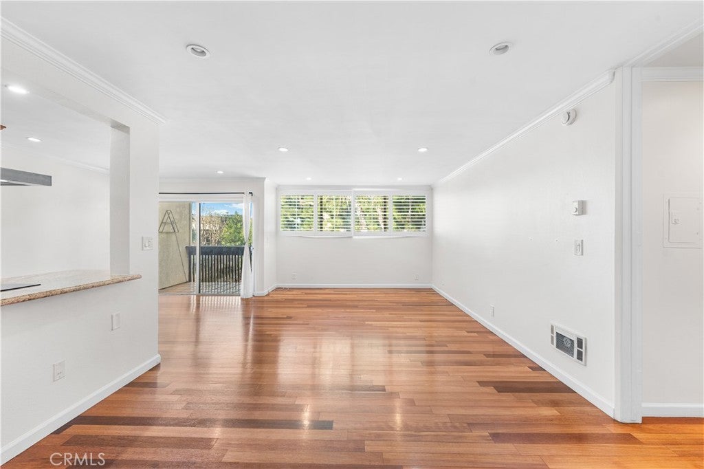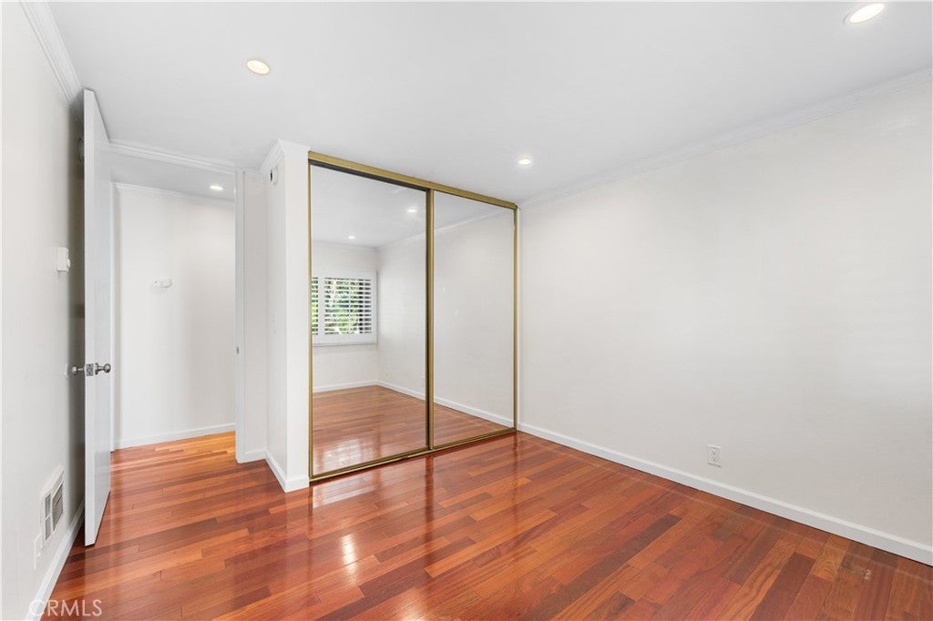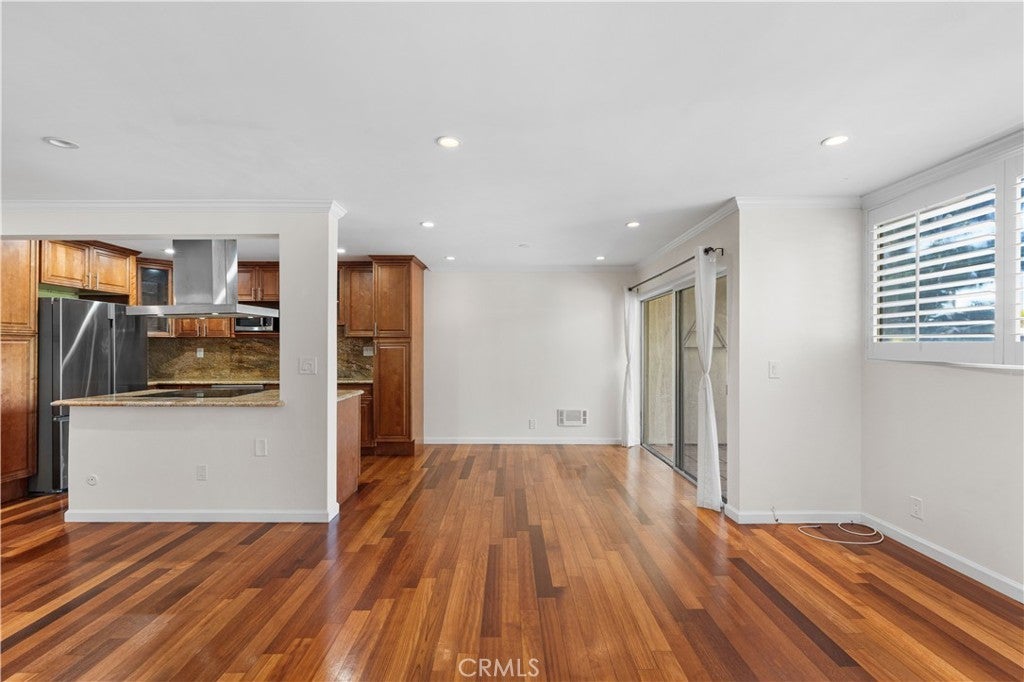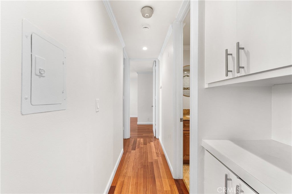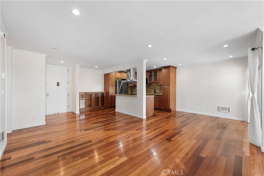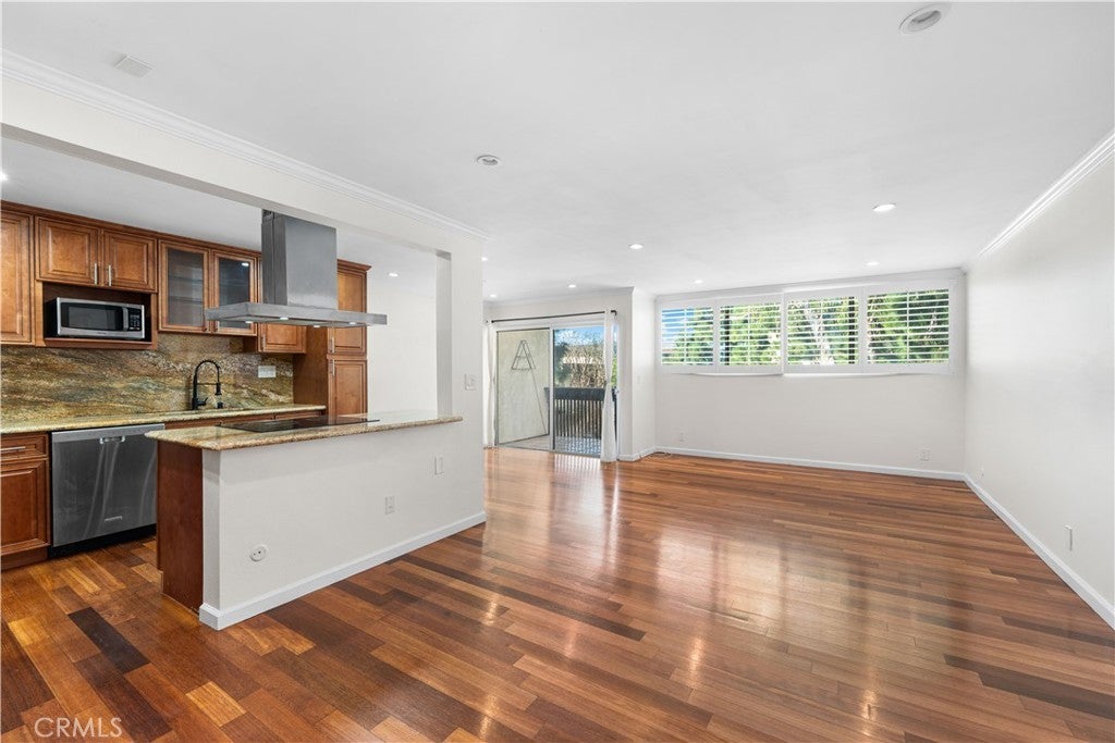Experience elevated Westside living in this beautifully remodeled top-floor 2-bedroom, 2-bath residence with peaceful greenbelt and treetop views. A bright, open layout filled with natural light showcases cherry hardwood floors, crown molding, and recessed lighting throughout. The updated island kitchen features stainless steel appliances, café-toned shaker cabinetry, granite countertops, and backsplash, flowing seamlessly into the living and dining areas with a built-in wine cabinet. Both bathrooms are tastefully upgraded with granite counters, subway tile, and frameless glass shower doors. The spacious primary suite offers a walk-in closet, jetted tub, and built-in full-length mirror. Additional highlights include a nearby laundry room and two side-by-side parking spaces next to the elevator. Located in prime Culver City near Silicon Beach, Playa Vista, Downtown Culver City, LAX, the Expo Line, and top shopping and dining, with Fox Hills Park just a short walk away. The pet-friendly Pines community offers resort-style amenities, including a heated pool, fitness center, saunas, clubhouse, and Amazon lockers. HOA dues include water, trash, and insurance, and residents qualify for Culver City Unified School District.