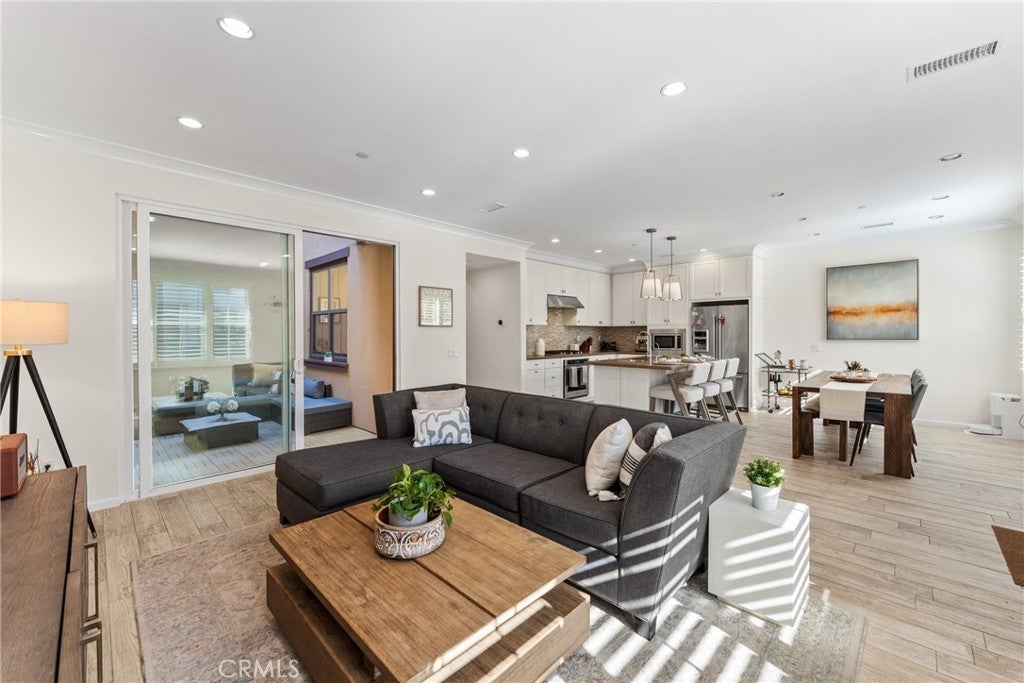 (Major $100,000 price reduction! Exceptional opportunity-seller is highly motivated and ready to make a deal.)Welcome to this absolutely stunning and rarely available Entrata Plan 2 condominium in the prestigious Orchard Hills community of Irvine. Perfectly situated along the picturesque greenbelt, this beautifully maintained 2-bedroom, 2.5-bath residence with a tech loft offers a unique and highly desirable layout with no neighbors above or below, providing exceptional privacy and comfort. As you step inside, you are greeted by a bright and inviting open-concept great room featuring elegant wood-like tile flooring and plantation shutters, creating a warm and sophisticated atmosphere. The thoughtfully designed kitchen is the heart of the home, complete with a spacious center island, upgraded quartz countertops, abundant cabinetry, custom decorative backsplash, and premium stainless-steel appliances, all highlighted by two stylish pendant lights. Step outside to the private outdoor atrium, a peaceful retreat perfect for weekend BBQs, morning coffee, or intimate evening gatherings under the California sky. Upstairs, you’ll find a generous tech loft, ideal for a home office or study area, along with two spacious en-suite bedrooms and a conveniently located individual laundry closet. The luxurious primary suite offers French doors that open to a large private balcony, where you can enjoy breathtaking mountain and greenbelt views. The spa-inspired primary bathroom features dual vanities, a soaking tub, a separate shower, and a large walk-in closet. Additional highlights include an oversized 2.5-car garage, offering incredible flexibility for a home gym, workshop, or additional storage. Residents enjoy access to resort-style community amenities, including two pools, a clubhouse, playground, and sports courts, all within the highly acclaimed Irvine Unified School District, serving Canyon View Elementary and Northwood High School. As you walk through this home, you’ll quickly notice the many thoughtful details and meticulous care throughout, reflecting the homeowner’s dedication to creating a warm, welcoming, and well-loved living space. This beautiful home truly offers the perfect blend of comfort, style, and location—a rare opportunity that won’t last long.