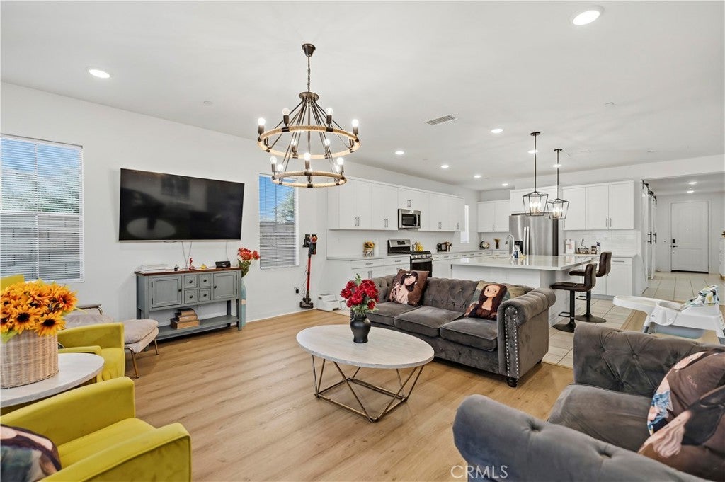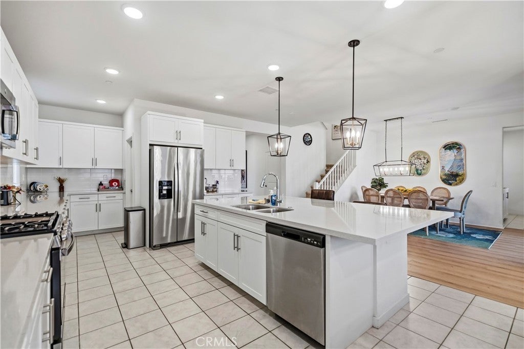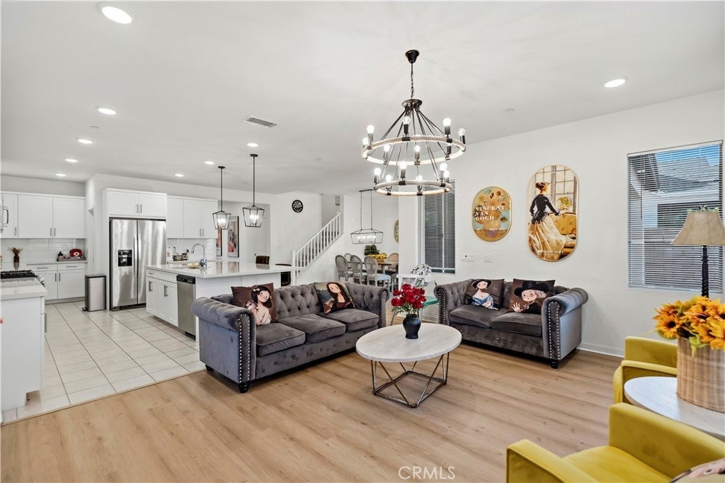 Beautiful and spacious home featuring 5 bedrooms and 4 bathrooms, including a convenient first-floor bedroom and full bathroom, perfect for guests, extended family, or a home office.The home offers a bright and open floor plan with upgraded flooring in the living room, an upgraded kitchen countertop, and modern ceiling lights and updated lighting throughout the entire home, creating a stylish and comfortable living space. The functional kitchen and open living areas are perfect for both everyday living and entertaining. Upstairs features generously sized bedrooms, including a spacious primary suite designed master bedroom for comfort and privacy. A suite and two other good sized bedroom with a den. A 3-car garage provides ample parking and storage space. Conveniently located near shopping, parks, schools, and major freeways, offering both comfort and convenience.