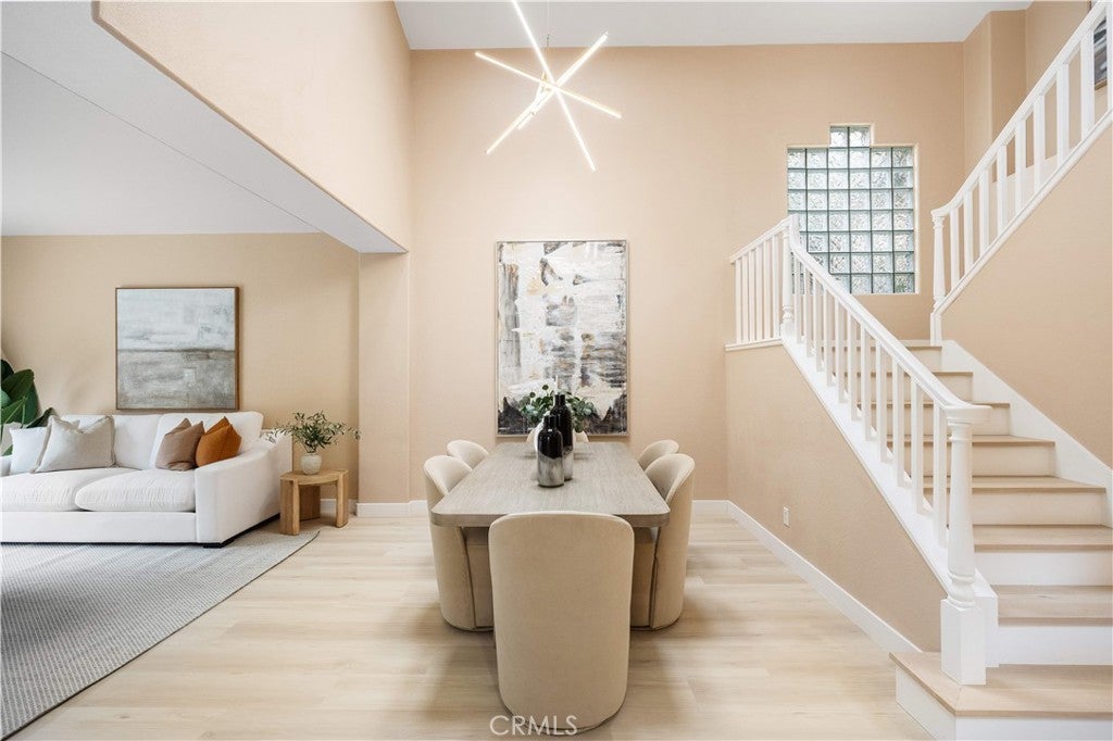This beautifully refreshed 4-bedroom, 2.5-bath single-family home offers a rare blend of original showcase design and thoughtful modern updates. As a former model home, the property offers a well-designed exterior and an open, well-balanced floor plan. Upon entering through the double-door entry, you’re immediately welcomed by a dramatic soaring ceiling that creates an open, airy first impression. The flow continues into the formal living and sitting areas, where the high ceilings amplify natural light and give the home an exceptional sense of volume and elegance. The heart of the home features a family room connected to the kitchen, providing a relaxed space ideal for everyday living, entertaining, or unwinding with family and friends. Throughout the home, new upscale vinyl flooring, updated crystal chandeliers, and quartz bathroom countertops bring a clean, contemporary finish while preserving the home’s original upscale character. The primary suite is generously sized and includes an adjoining retreat area, complete with an angled fireplace and built-in desk—a flexible space perfect for a home office, reading lounge, or quiet escape. Originally, the builder offered this retreat as an optional additional bedroom, highlighting the home’s adaptable layout. This residence delivers timeless architecture, flexible living spaces, and modern finishes—an exceptional opportunity for buyers seeking both character and updated appeal.