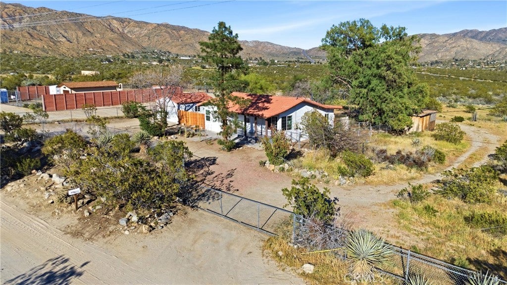 Charming Remodeled 2 bedroom, 1 bathroom home with den located in the peaceful area of Morongo Valley Property features indoor laundry, functional floor plan, and Spanish tile roof. Situated on an approximately 1.3-acre lot, offering ample space for outdoor use, storage with detached 2 car garage, or future possibilities. tiled bathroom and indoor laundry. Enjoy desert views and a quiet setting while still conveniently located near Yucca Valley, Joshua Tree, and Palm Springs.