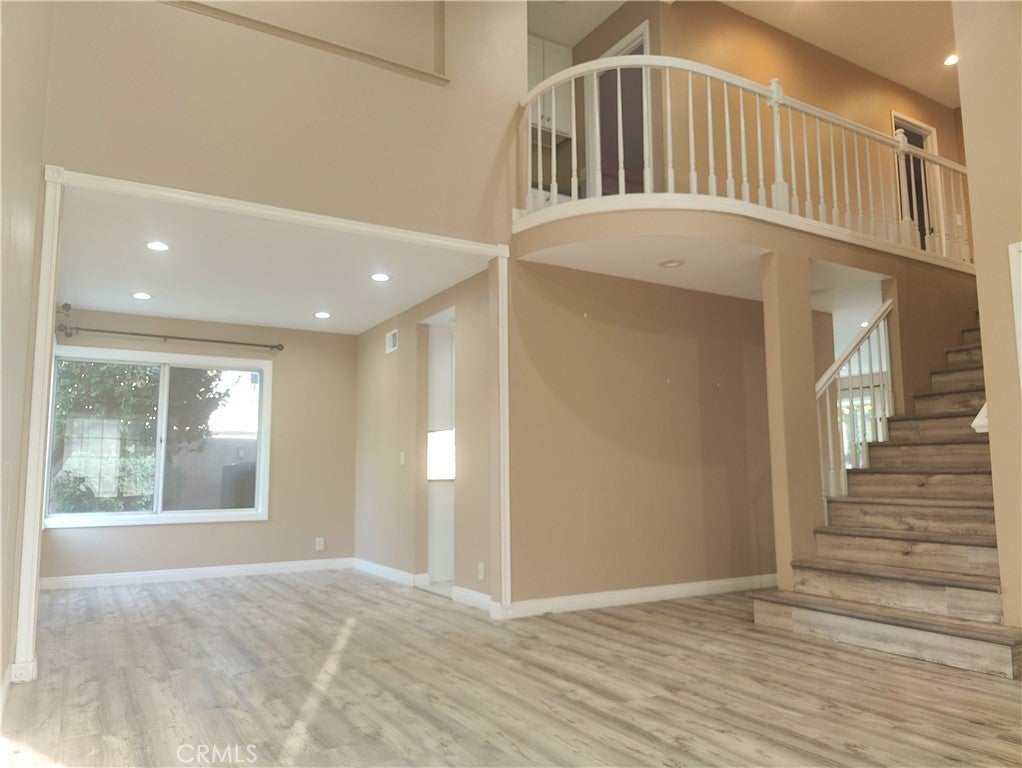 For lease is a beautifully located 4 bedrooms 2.5 bathrooms two stories single family house. Located in a quiet neighborhood with views of San Bernardino Mountains and in a community with gated community pool, park and family gathering area. Newer wood flooring downstairs and upstairs. Nice spacious floor plan with large stairs on the side of the house which doesn't take up any spaces. Downstairs has a spacious living room (with high ceiling) and family room with fireplace and patio door to backyard, dining room, breakfast nook, kitchen, laundry room, half bathroom, and 2 car attached remote garage with newer motor and direct access to the house and to side yard. Upstairs have master bedroom with 2 closets and full bathroom, and 3 bedrooms with a full bathroom. There's a ceiling fan cooler that sucks all the hot air out to keep the house cool. Bright house with natural sun light and house stay cool inside. Spacious front yard and spacious backyard with sweet oranges and Avocado tree and 2 lemon trees that produce big lemons! Good backyard for kids and pets to play and family gathering. Backyard has BBQ area and gas connection for BBQ. Newer Kitchen has stove and dishwasher for tenant to use. Newer Central AC and Heat and water heater! Recessed lightings throughout the house.! Ready for movein!