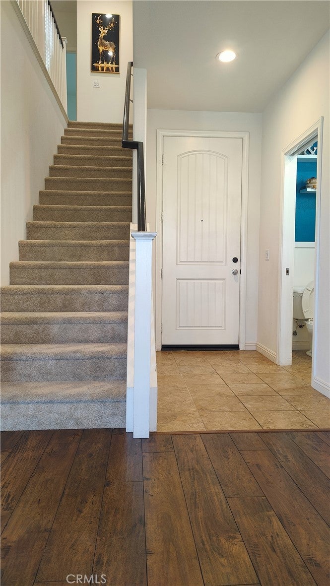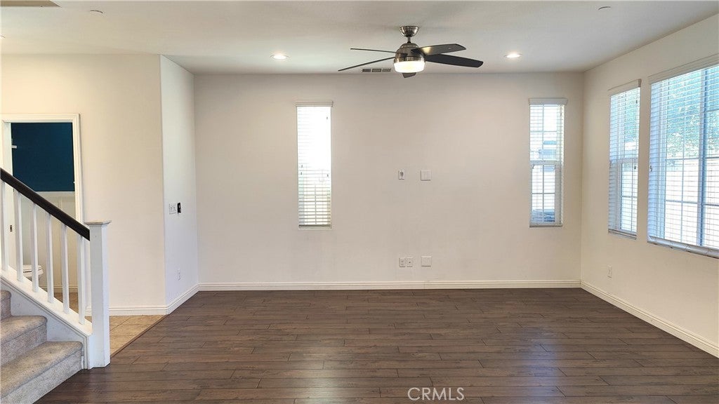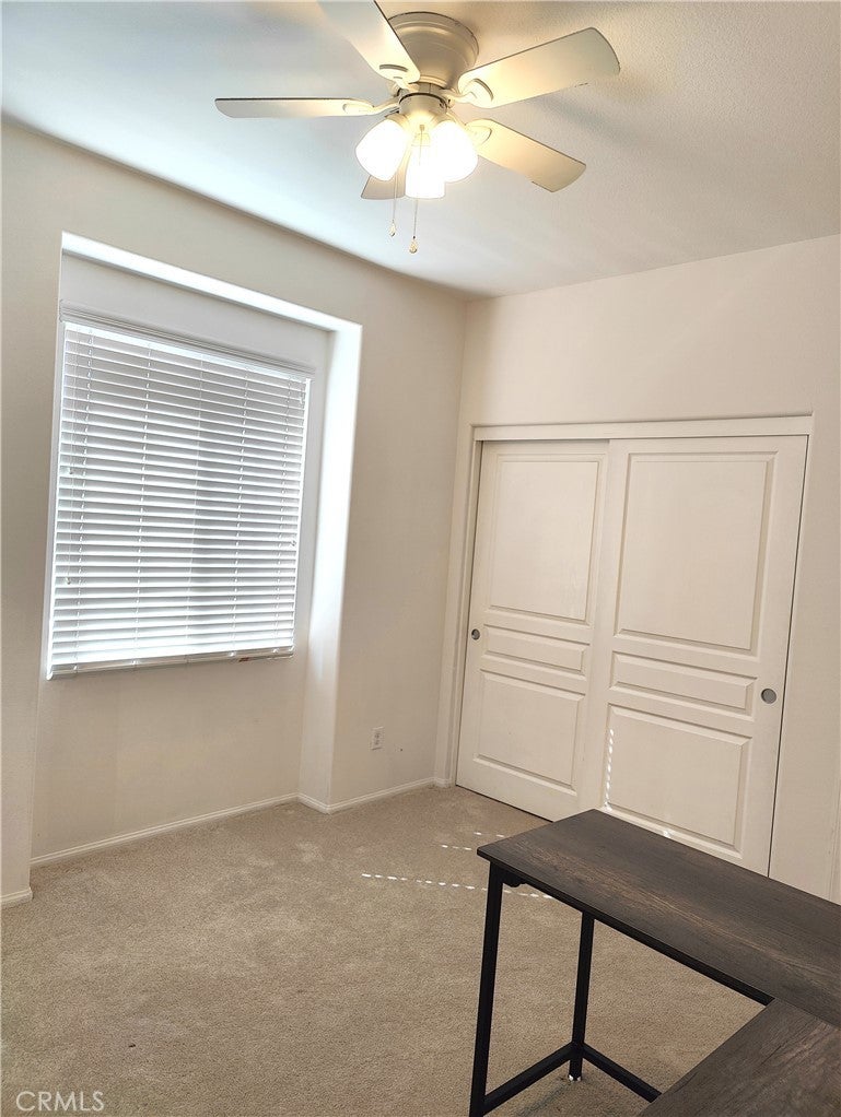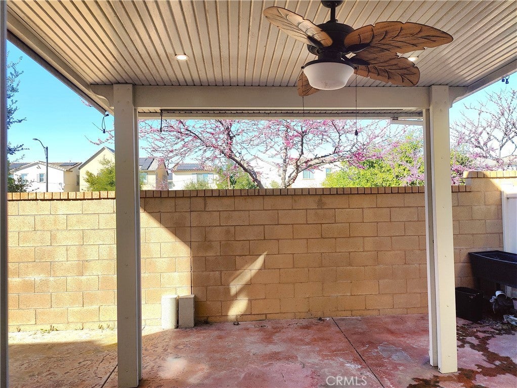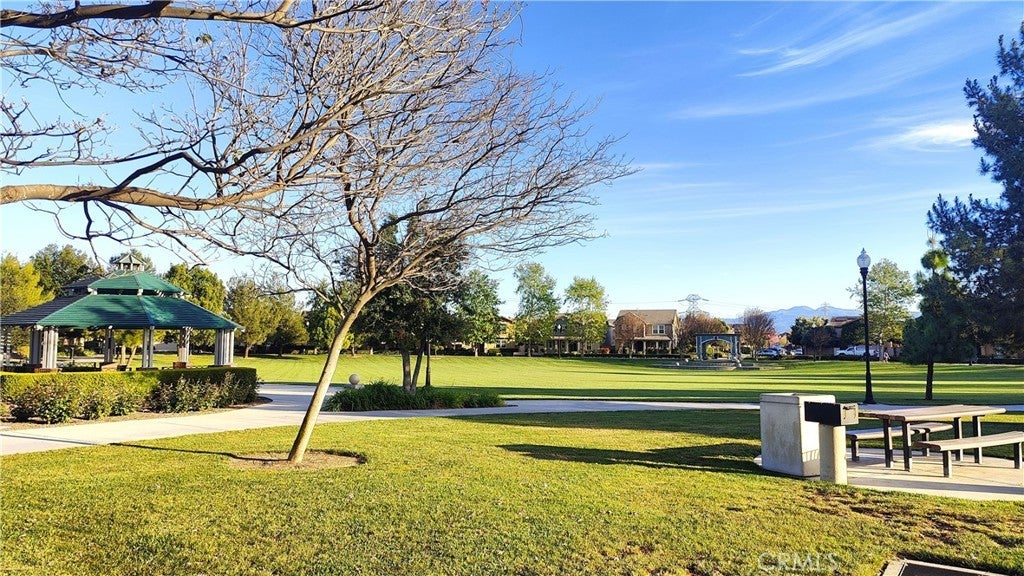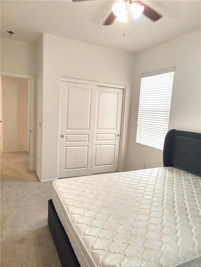Ontario Ranch detached single family 2 story home with 3 bedrooms, 2.5 baths, and 1758 square feet of comfortable living on a 2,430-square-foot lot lot. House with fully paid off Solar panels worth close to $30,000 so pretty much new homeowners don't have to pay any costly electricity bills. As you enter the house, there is a half bathroom and a good size living room and dining area with patio door to backyard. Also is good size grant countertops kitchen with stainless steal gas stove, range suction hood, dishwasher and a good size walk in closet and direct access to 2 car garage. Other upgrades include lamanite wood flooring for downstairs, upstairs with carpet and laundry room comes with washer and dryer. Upstairs have 2 good size bedrooms sharing a bathroom, and Master bedroom with walk in closets and good size master bathroom. Chip Smith HOA comes with amenities including a clubhouse with a movie theater, gym, banquet rooms, libraries, a game room, and office space, pool and park. Located in the heart of Ontario Ranch, CA, this home is close to big parks, schools, nearby shopping centers, dining, and entertainment, and close proximity to the 60, 71, 15, and 91 freeways. Backyard has flooring done with low maintenance and a patio with fan.