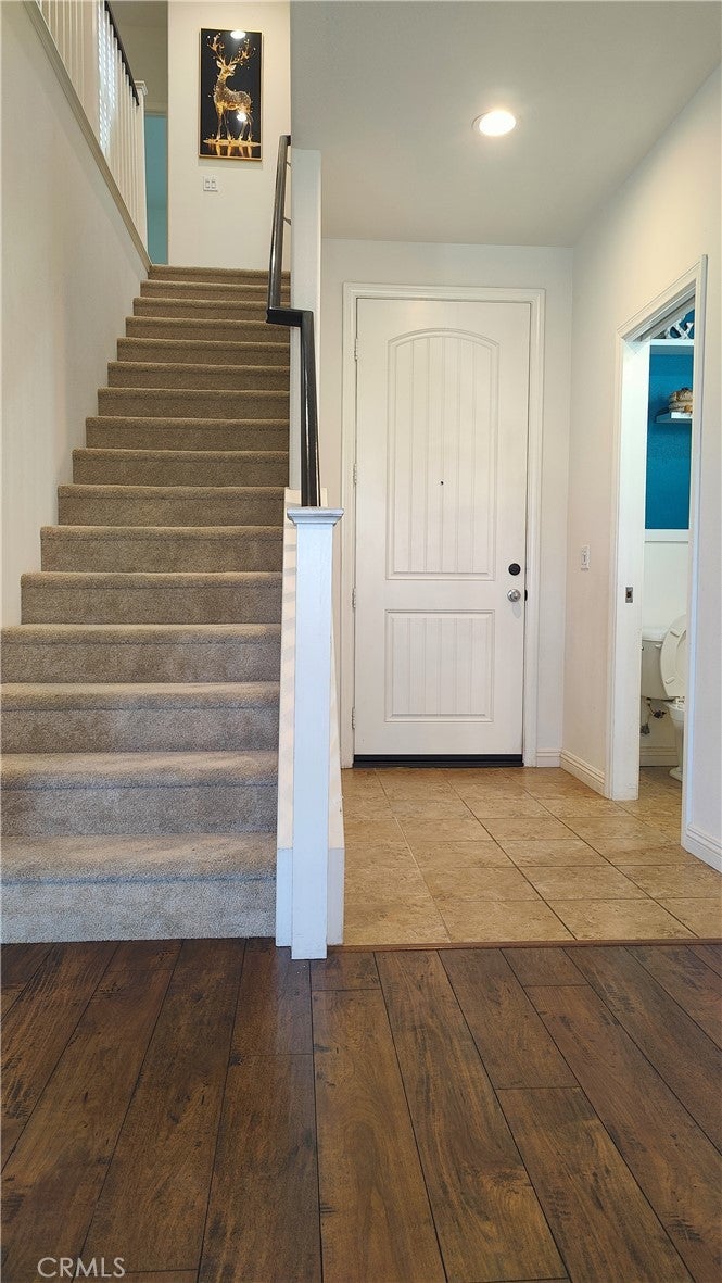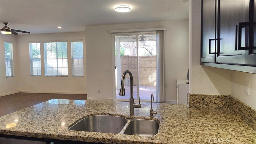 Ontario Ranch detached single family 2 story home with 3 bedrooms, 2.5 baths, and 1758 square feet of comfortable living on a 2,430-square-foot lot lot. House with fully paid off Solar panels worth close to $30,000 so pretty much new homeowners don't have to pay any costly electricity bills. As you enter the house, there is a half bathroom and a good size living room and dining area with patio door to backyard. Also is good size grant countertops kitchen with stainless steal gas stove, range suction hood, dishwasher and a good size walk in closet and direct access to 2 car garage. Other upgrades include lamanite wood flooring for downstairs, upstairs with carpet and laundry room comes with washer and dryer. Upstairs have 2 good size bedrooms sharing a bathroom, and Master bedroom with walk in closets and good size master bathroom. Chip Smith HOA comes with amenities including a clubhouse with a movie theater, gym, banquet rooms, libraries, a game room, and office space, pool and park. Located in the heart of Ontario Ranch, CA, this home is close to big parks, schools, nearby shopping centers, dining, and entertainment, and close proximity to the 60, 71, 15, and 91 freeways. Backyard has flooring done with low maintenance and a patio with fan.