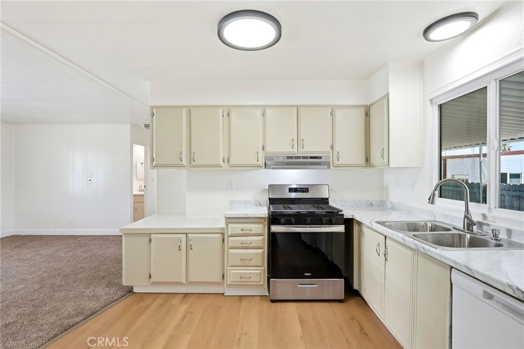 Welcome to this updated 1976 Meteor double-wide located in the Stardust Mobile Home Community. This 2-bedroom, 2-bath home offers a comfortable and functional layout with recent updates throughout. The interior features a clean and refreshed living space that is move-in ready. The spacious primary bedroom includes built-in cabinetry and an en-suite bathroom featuring a sunken tub for added comfort. Additional built-ins throughout the home, provides extra storage and character. The kitchen offers ample cabinetry along with a gas range, creating a functional and inviting space. Indoor laundry hookups add everyday convenience. Situated in an established community, this home presents a great opportunity for low-maintenance living. Enjoy affordable space rent of $995 per month.
