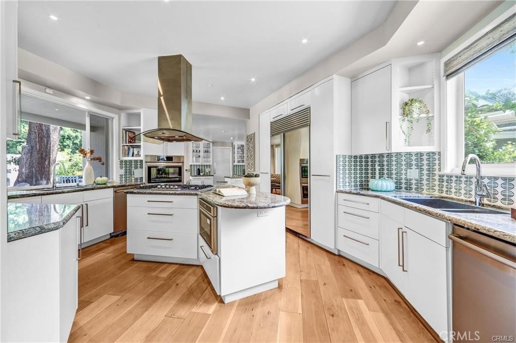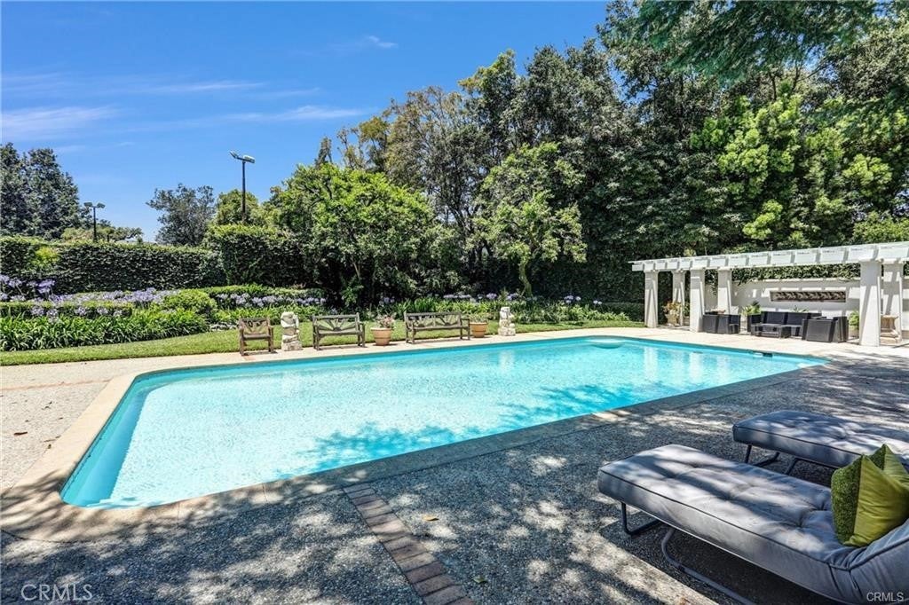 Welcome to this remarkable mid-century modern estate designed by H. Roy Kelley, meticulously remodeled and expanded between 2014 and 2018, this home seamlessly merges iconic architectural charm with modern luxury, offering a sophisticated retreat near the prestigious Langham Hotel. The interior boasts premium finishes and materials, including stone and hardwood flooring, floor-to-ceiling windows, skylights, and a striking fireplace that anchors the living space. The chef's kitchen is equipped with state-of-the-art appliances, featuring a Sub-Zero refrigerator, Bosch range, Oven, microwave and dishwasher, delivering both style and functionality for culinary enthusiasts. Set on impeccably landscaped grounds, the estate offers a wealth of outdoor amenities. Enjoy a resurfaced tennis court, a sparkling pool, a spa, a built-in BBQ bar, and lush, mature plantings that create a serene environment for relaxation and entertaining. The luxurious primary suite serves as a private sanctuary, complete with a secluded deck and its own in-ground spa, perfect for unwinding after a long day. This one-of-a-kind property represents the pinnacle of mid-century modern design, enhanced with contemporary upgrades and situated in a highly coveted location. Don’t miss the chance to own this architectural gem!