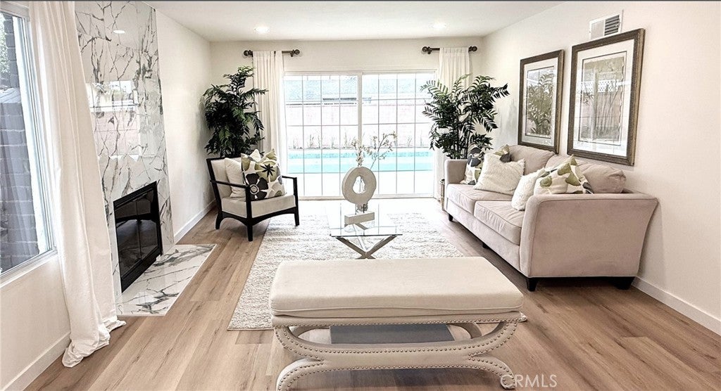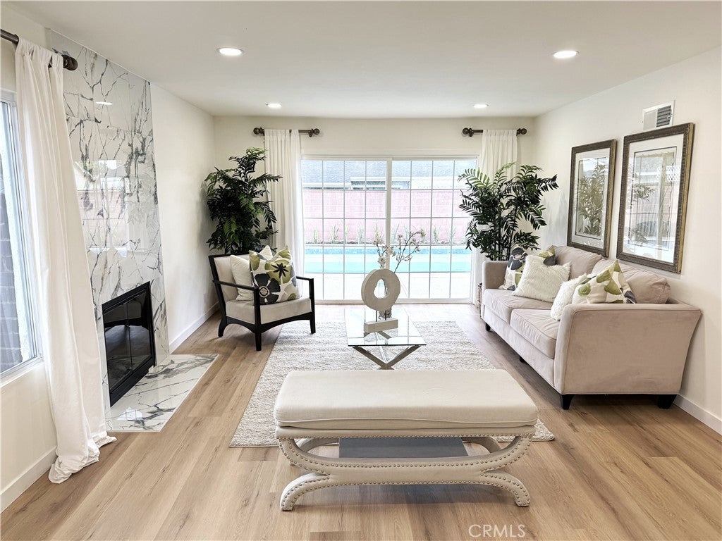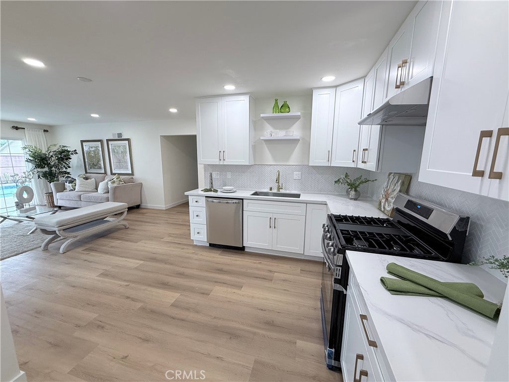 Welcome to this fully remodeled 4-bedroom, 2-bathroom home in Azusa, offering nearly 1,500 sq ft of modern living space. The bright open layout features a fully remodeled kitchen with quartz countertops, sleek cabinetry, and stainless-steel appliances, along with two updated bathrooms and brand-new flooring throughout. Upgrades include fresh interior and exterior paint, new central A/C, and a new garage door. The primary bedroom opens through a sliding glass door to the backyard pool.The spaciously fenced front yard provides privacy and room for pets, while the backyard pool and entertaining area are perfect for relaxing or hosting gatherings. Additional highlights include an EV-ready garage with a 220V plug and fully paid-off solar. It is conveniently located near schools, parks, shopping, and dining.