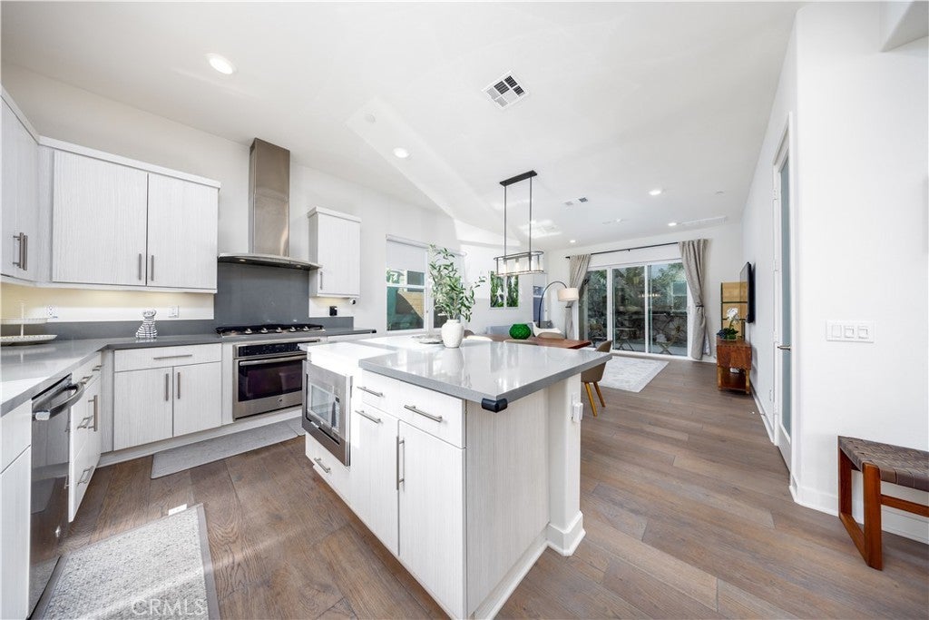 Highly upgraded detached condo situated on a desirable corner lot, offering excellent natural light and added privacy. This well-maintained home has been lightly used as a vacation residence and has never been rented. The open-concept floor plan features a spacious living area with upgraded engineered wood flooring throughout the first floor, creating a seamless flow between the living, dining, and kitchen areas. The kitchen includes quartz countertops, a large center island, stainless steel appliances, and ample cabinetry. Upstairs, all bedrooms are generously sized with upgraded carpet and padding. The primary suite features high ceilings and a well-appointed bathroom. All bathrooms are finished with modern tile. Additional features include a private backyard, separate laundry room, and attached 2-car garage. Conveniently located near parks, shopping, dining, and major transportation routes.