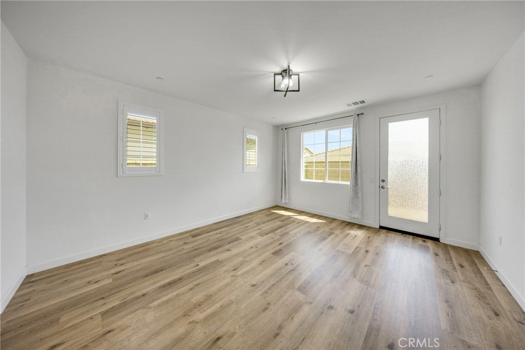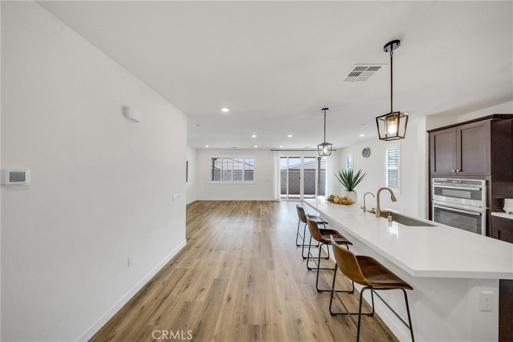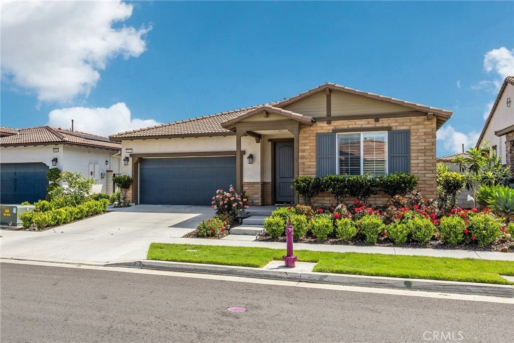 Highly desirable Esperanza 55+ gated community! This resort-style, low-maintenance home is ideally located just steps from the clubhouse. The community features exceptional amenities including a pool, fitness center, pickleball courts, BBQ areas, fire pits, and a dog park. Inside, discover a bright and open layout with high ceilings, a spacious living area, and a modern kitchen centered around a large island. Oversized sliding glass doors connect seamlessly to the backyard patio, creating a wonderful indoor-outdoor living experience. The primary suite includes a large walk-in closet and a spacious en-suite bathroom. Notable property features include brand-new flooring throughout, a whole-house water filtration system, and a fully paid-off solar system. The beautifully maintained grounds offer a loquat tree in the front yard and a pomegranate tree in the backyard. Super convenient location close to Costco, 99 Ranch Market, a future Whole Foods (opening 2027), and providing easy access to the 15, 60, and 91 freeways. Located approximately 15 minutes to Ontario International Airport. This home is perfectly designed for a comfortable and convenient lifestyle.